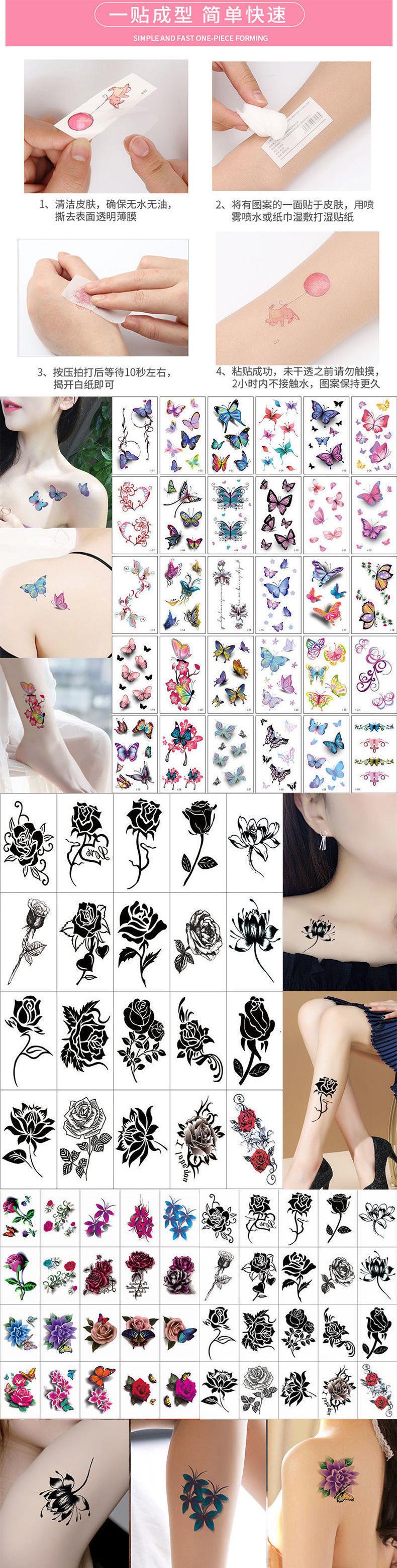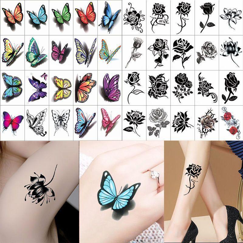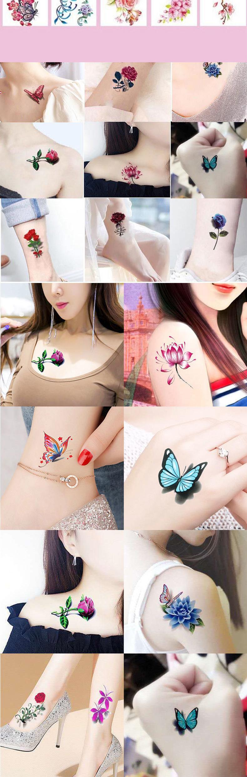 Calcomanías de Tatuaje 3D Estéreo Impermeables de Larga Duración Estudiante Dulce Sexy Moda Sexy Mariposa Rosa Clavícula Calcomanías de Tatuaje