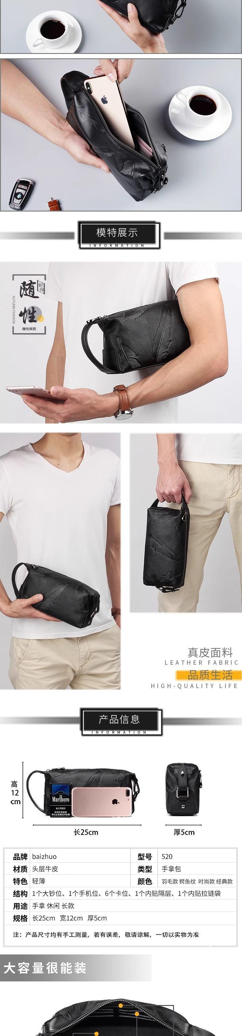 Bolso Clutch de Cuero Genuino para Hombre Nuevo de Gran Capacidad Bolso de Mano para Hombre Moda Casual Combinable Bolso Clutch para Hombre