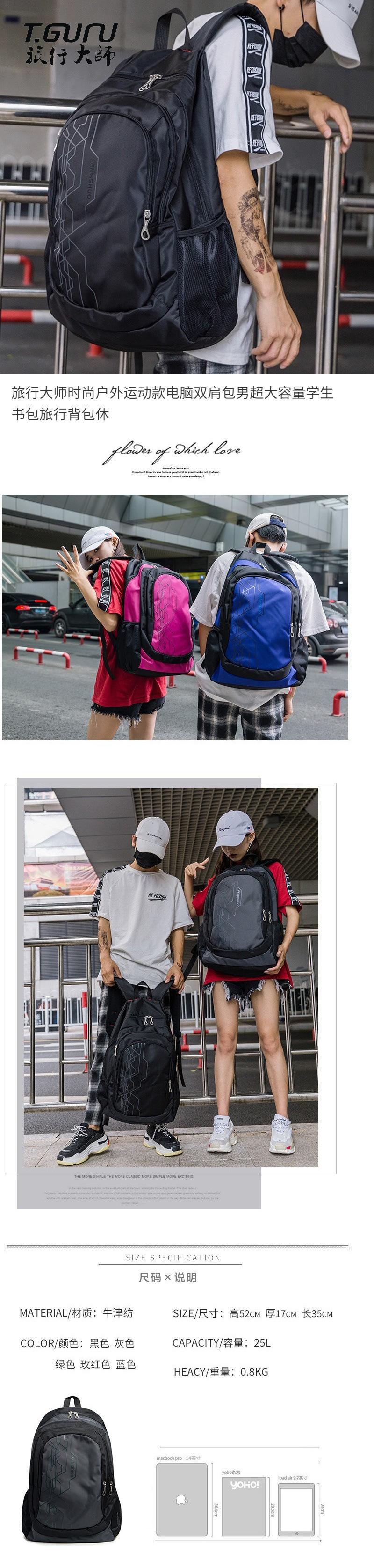 Mochila Deportiva de Moda para Exterior para Computadora para Hombre de Capacidad Extra Grande Mochila Escolar para Estudiante Mochila de Viaje