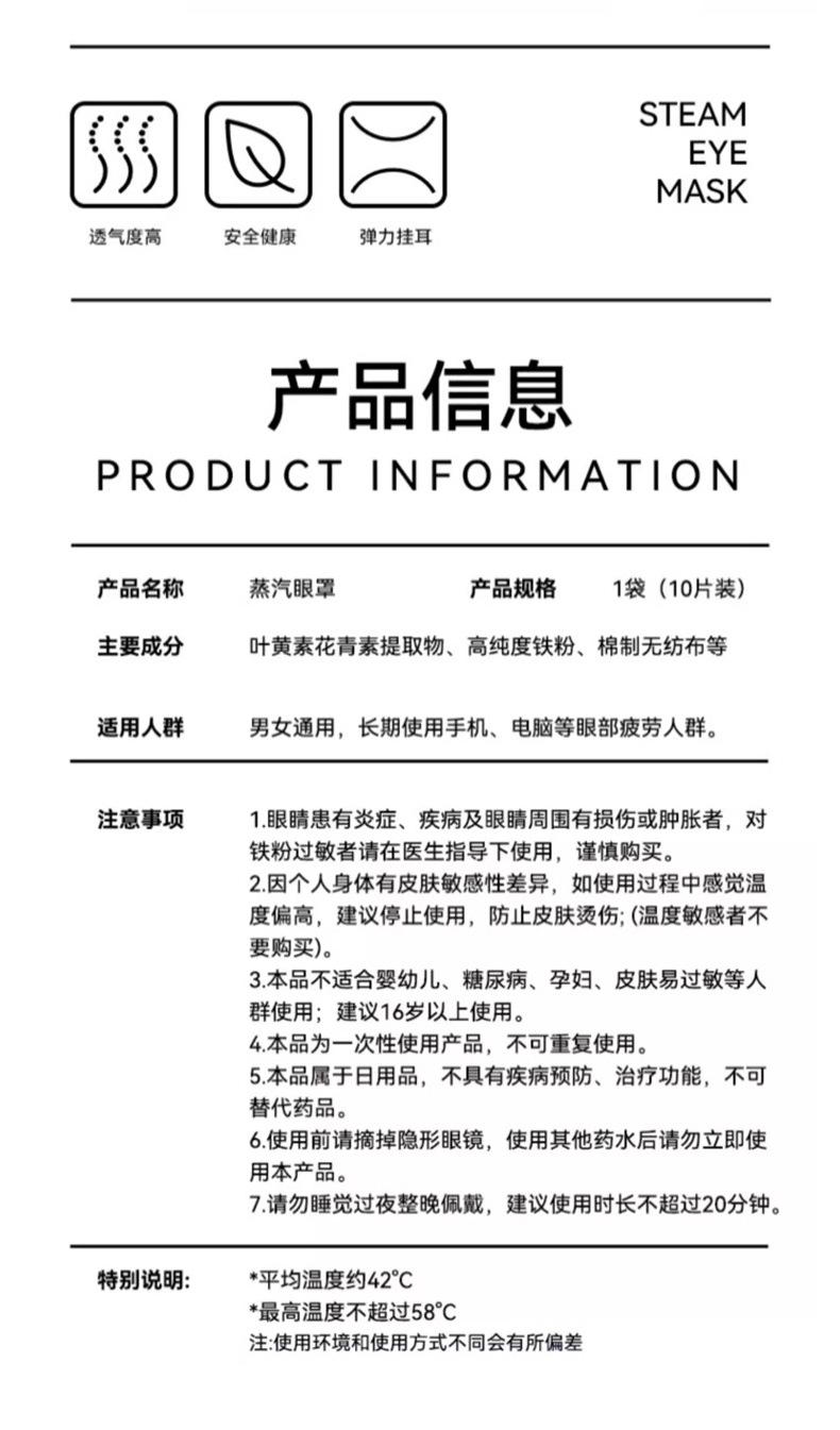 Mascarilla de vapor para ojos, alivia la fatiga ocular, luteína, antocianina, compresa caliente, protección para dormir, para estudiantes, parche protector ocular con calor para la fiebre.