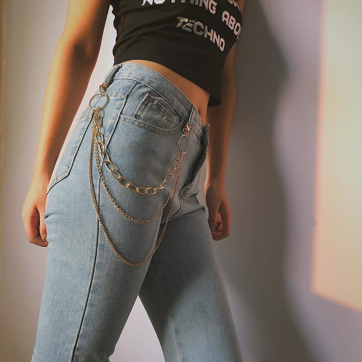 Europeo y Americano Transfronterizo Trendy Personalizado Hip Hop Anillo de Metal Cadena de Cintura Moda Estilo Punk Genial Guapo Multicapa Cadena de Ropa Decoración de Cintura