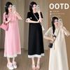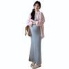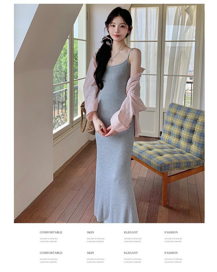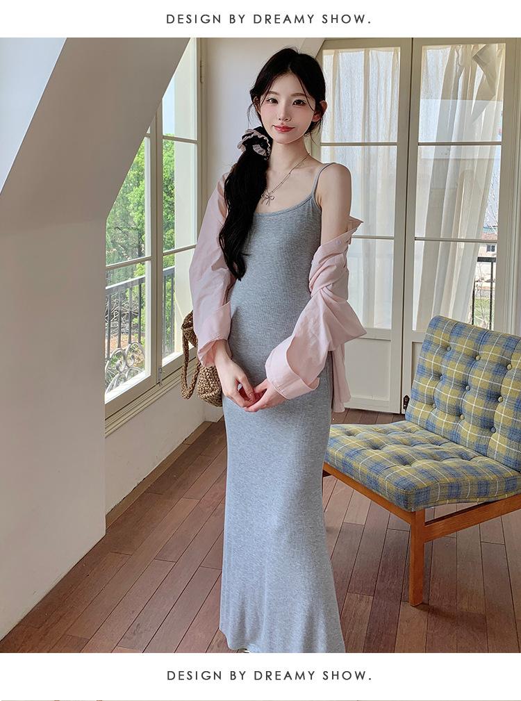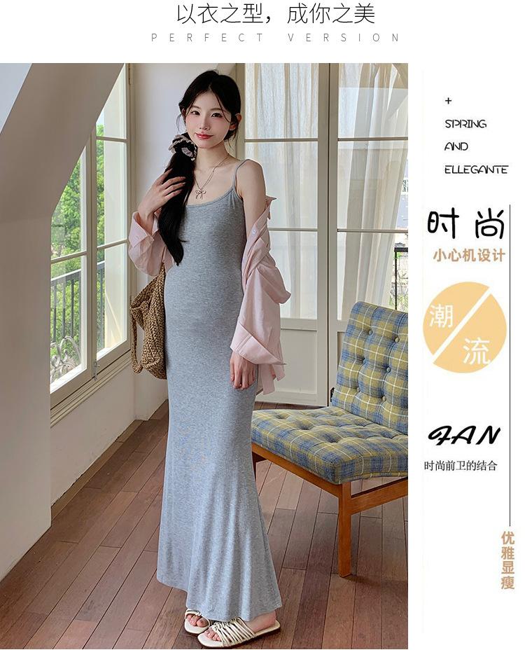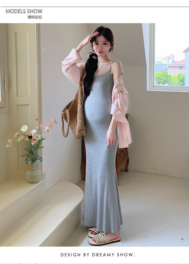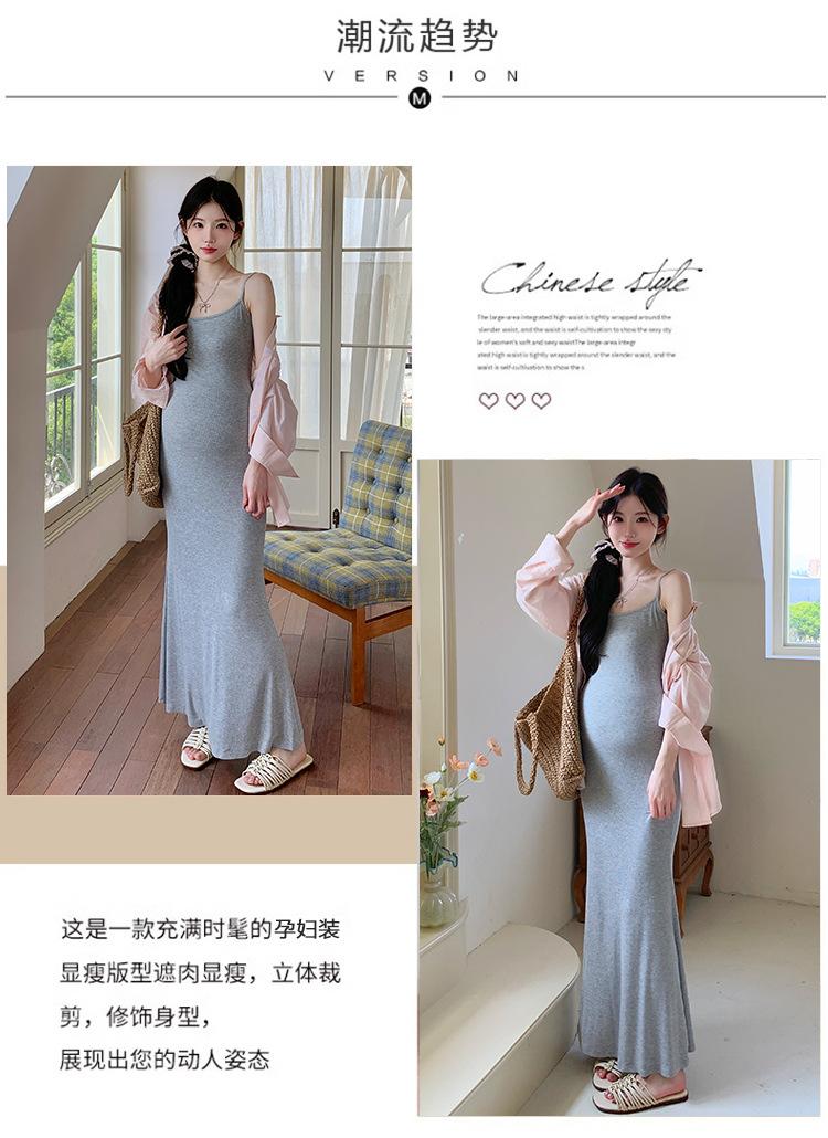 Ropa de Maternidad 2025 Nuevo Verano Algodón y Lino Camisa Rosa + Falda de Tirantes Estilo Holgazán Vestido de Maternidad de Dos Piezas