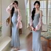 Gray suspender skirt M