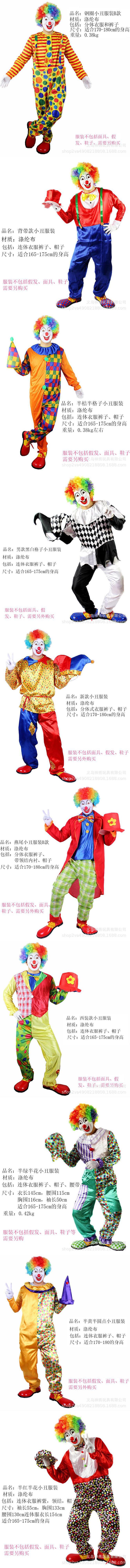 Men's black and white plaid clown suit, Half red and half flower clown suit, Half green and half flower clown ...