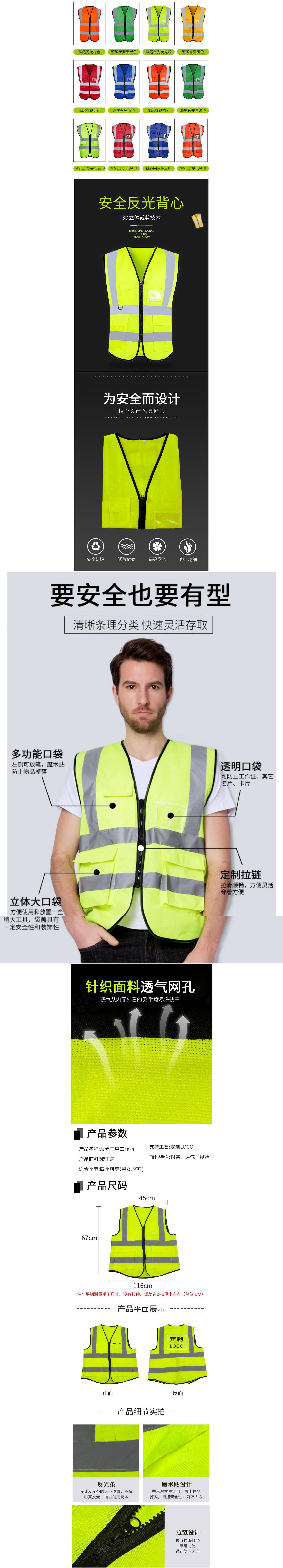 120g all over - double waist zipper pocketless reflective vest* fluorescent green, 120g all over - double wais...