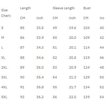 S, M, L, XL, XXL, 3XL, 4XL, 5XL