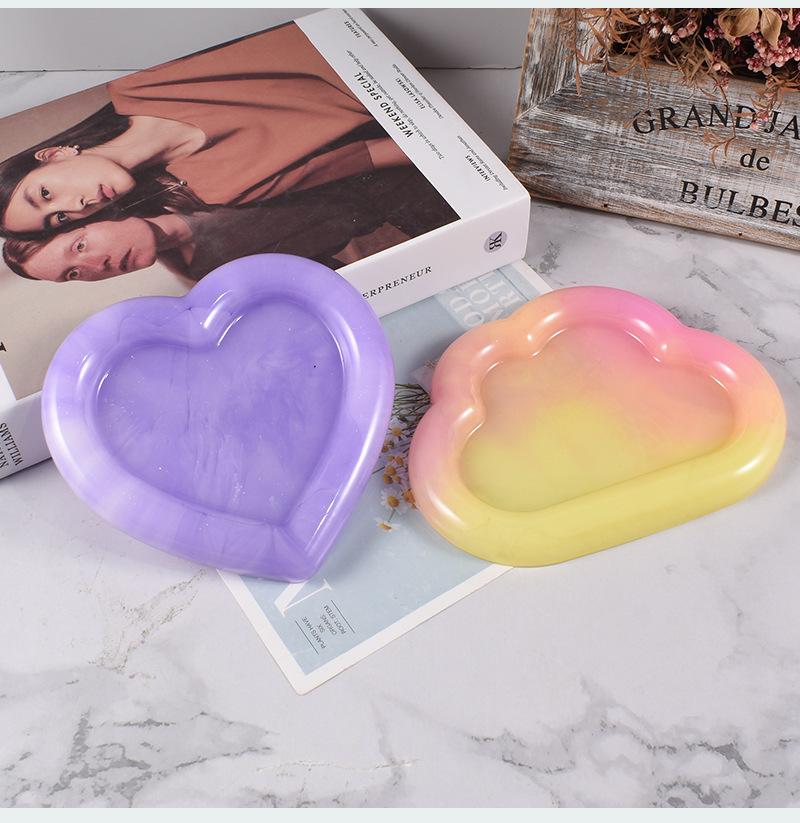 Molde de silicona para placa de cemento de yeso epoxi cristalino geométrico óvalo nube amor bandeja de almacenamiento plato