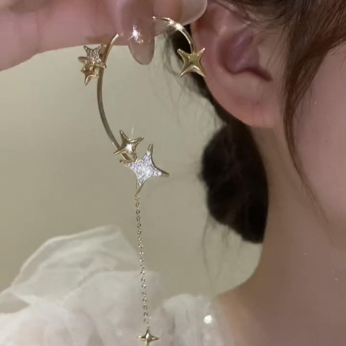 F1764 Silver Four Star Tassel Ear Hanging Left