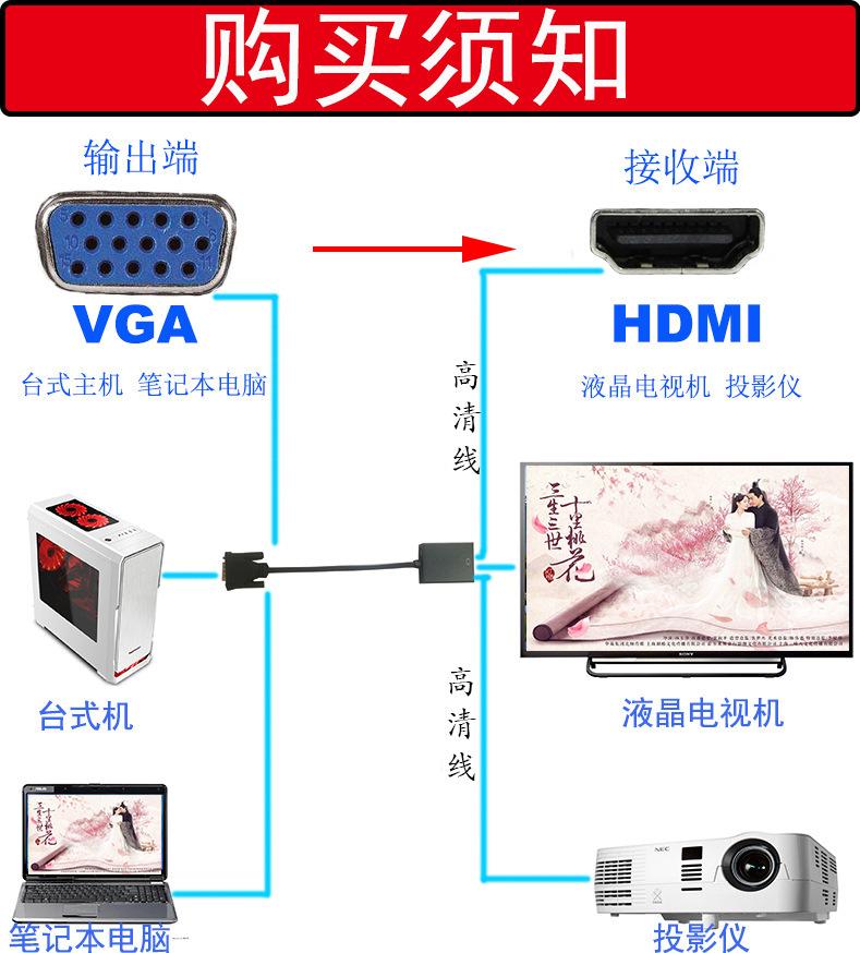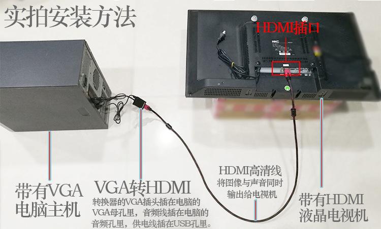 VVGA a HDMI es adecuado para: computadoras con interfaces VGA, conectadas a televisores LCD o proyectores con interfaces HDMI, el convertidor necesita ser utilizado en conjunto con un cable HDMI de alta definición.