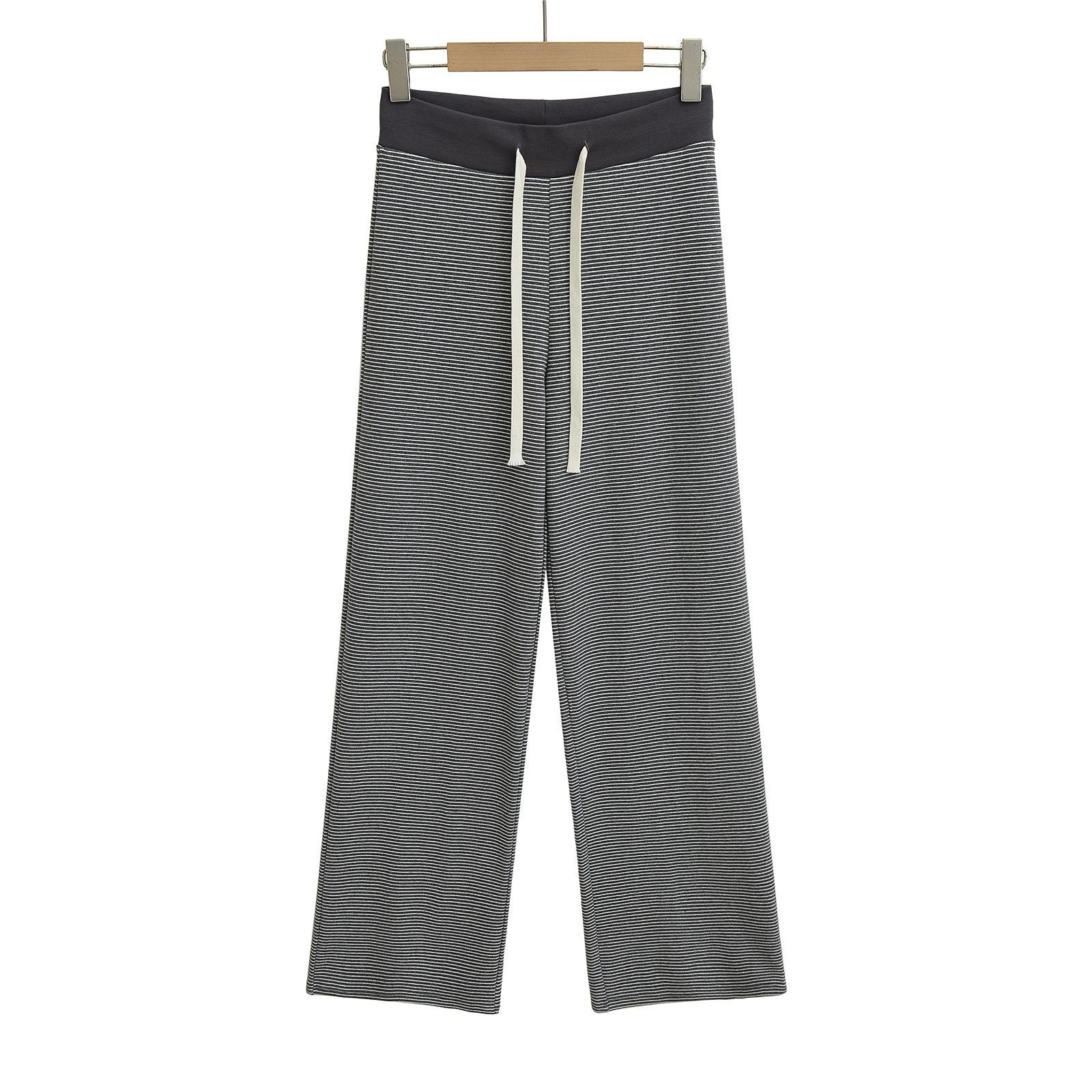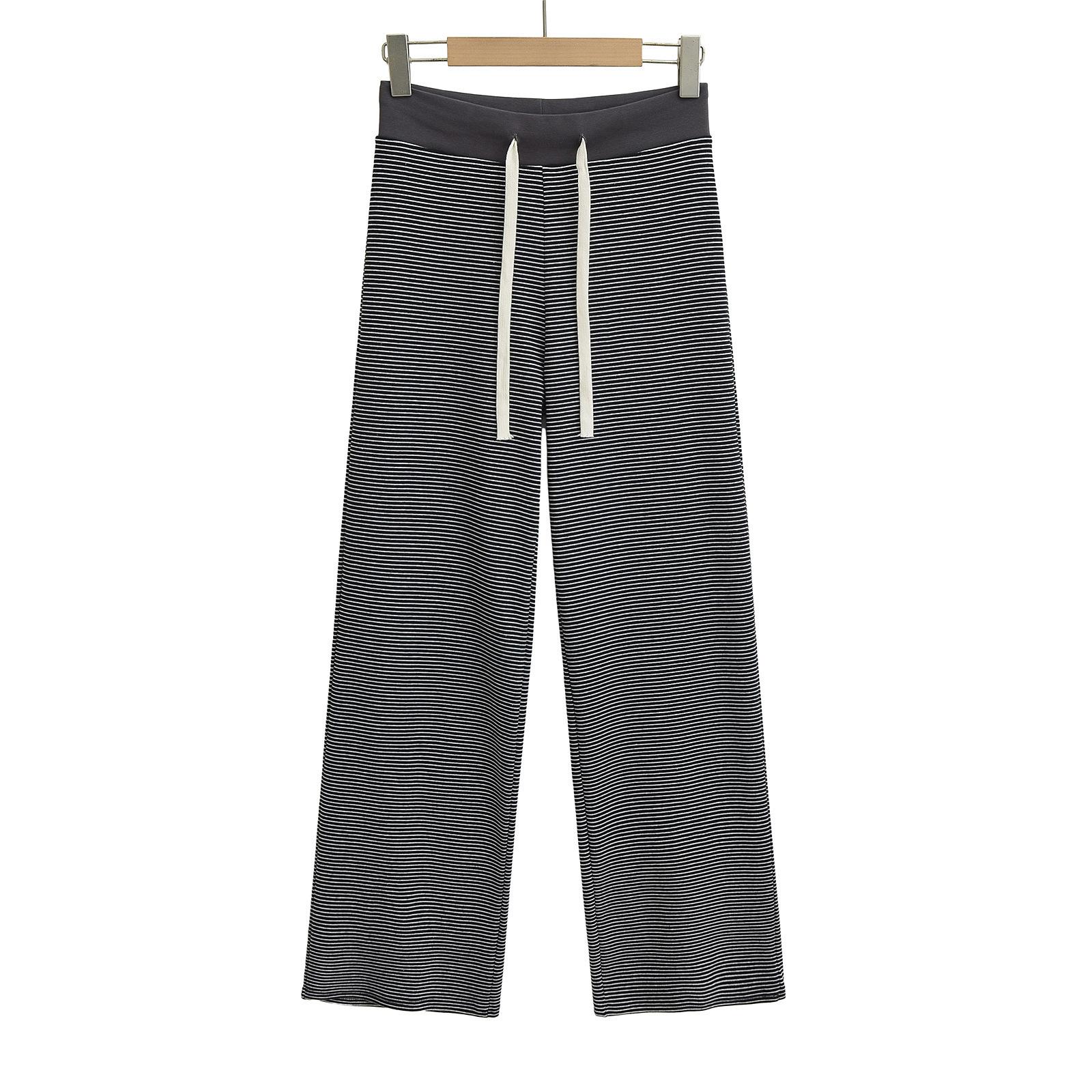 Compra Pantalones de Pierna Ancha con Cordón a Rayas de Cintura Ancha para Chica Caliente 2025 para Mujer Moda Americana Trendy Versátiles de Pierna Recta Casuales al por mayor en Joom.pro