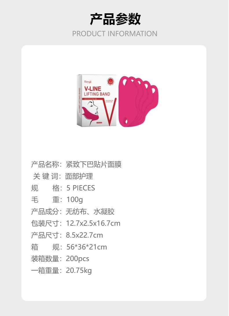Parche reafirmante exclusivo transfronterizo para el mentón, mascarilla hidratante y humectante, reafirmante de la línea de la mandíbula, película para el cuidado facial en forma de V