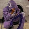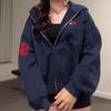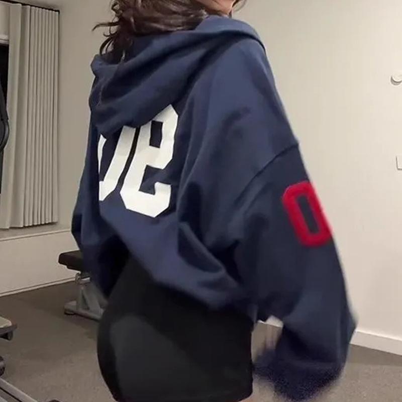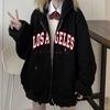 Moda Americana Retro Deportiva con Capucha Otoño e Invierno Patrón de Combinación de Colores con Letras Sudadera con Capucha y Cremallera Holgada Casual y Cómoda