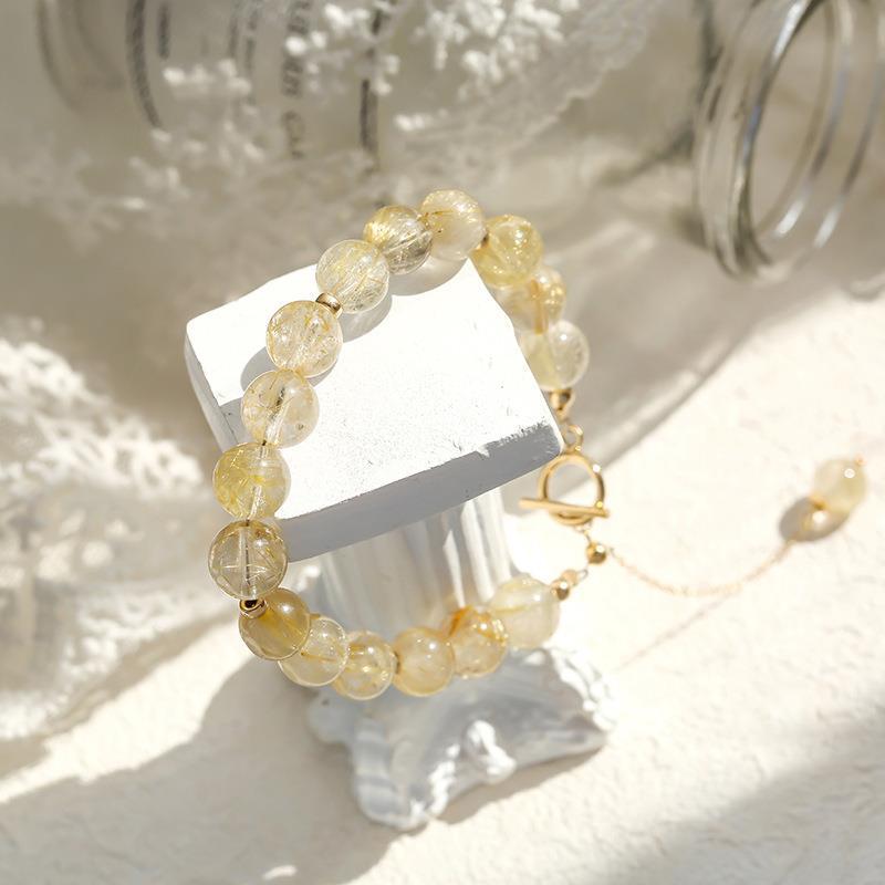 Joyería Pulsera de Cristal Natural Pulsera de Cristal Cabello Dorado para Mujer Ins Diseño Simple Original Versátil Diario para Ir al Trabajo