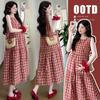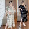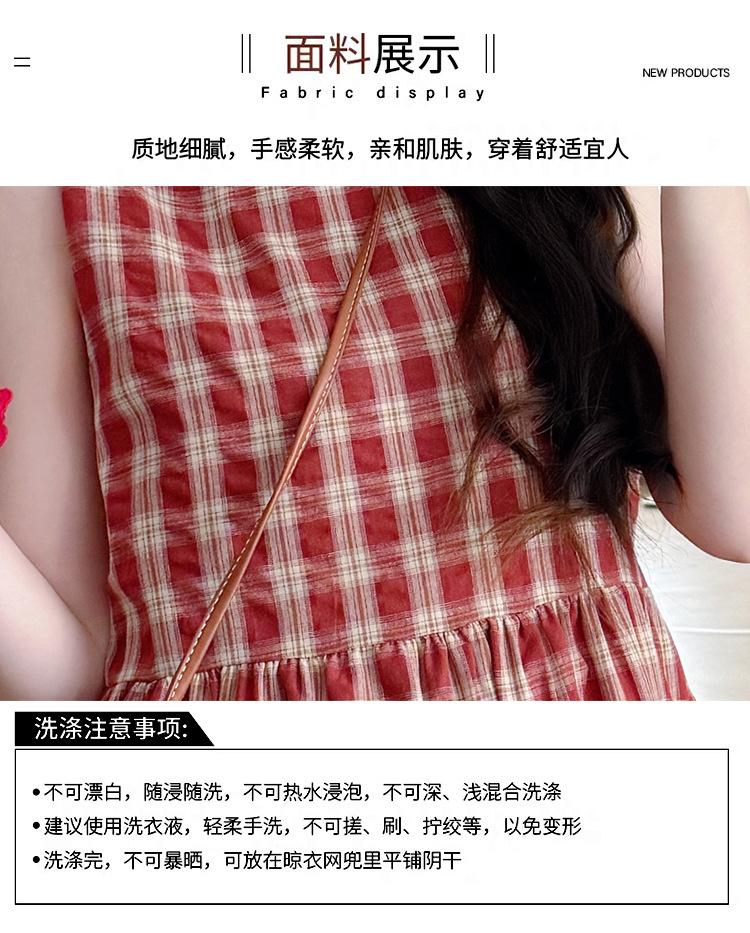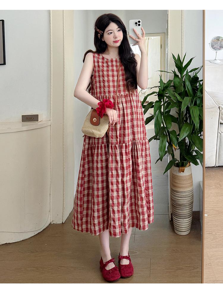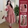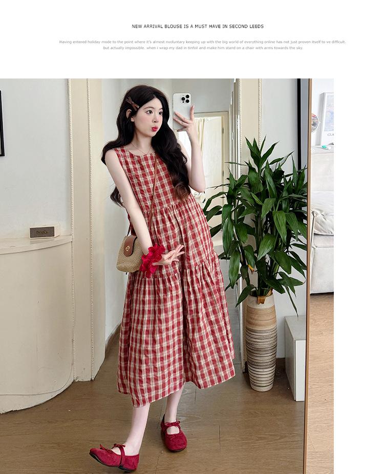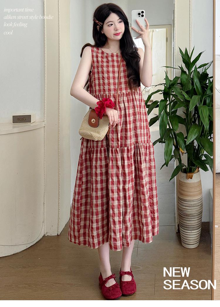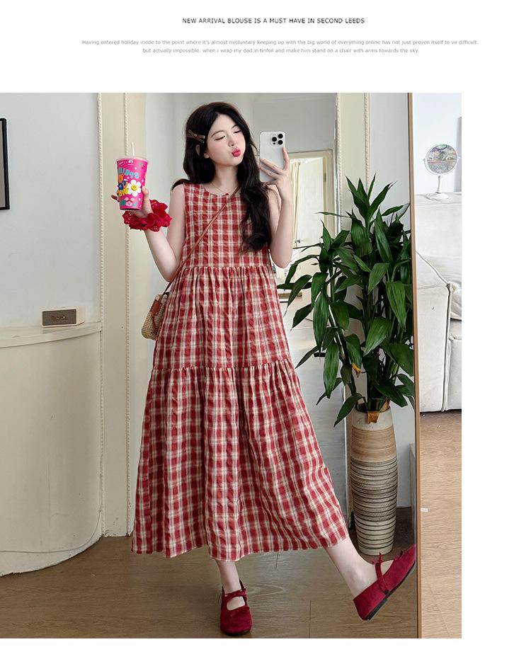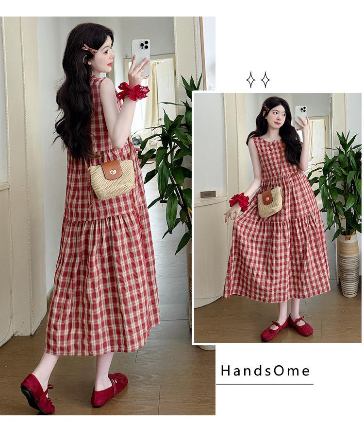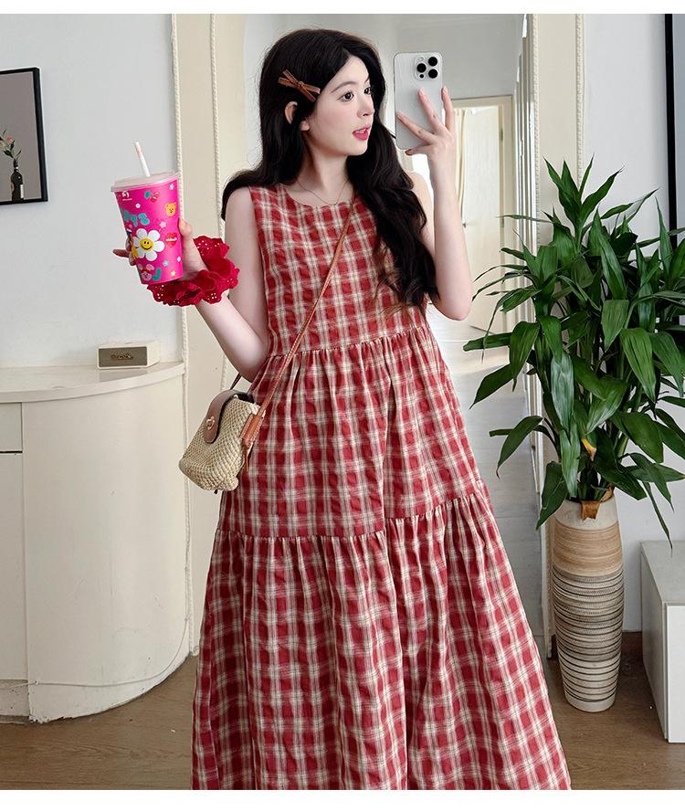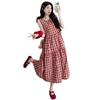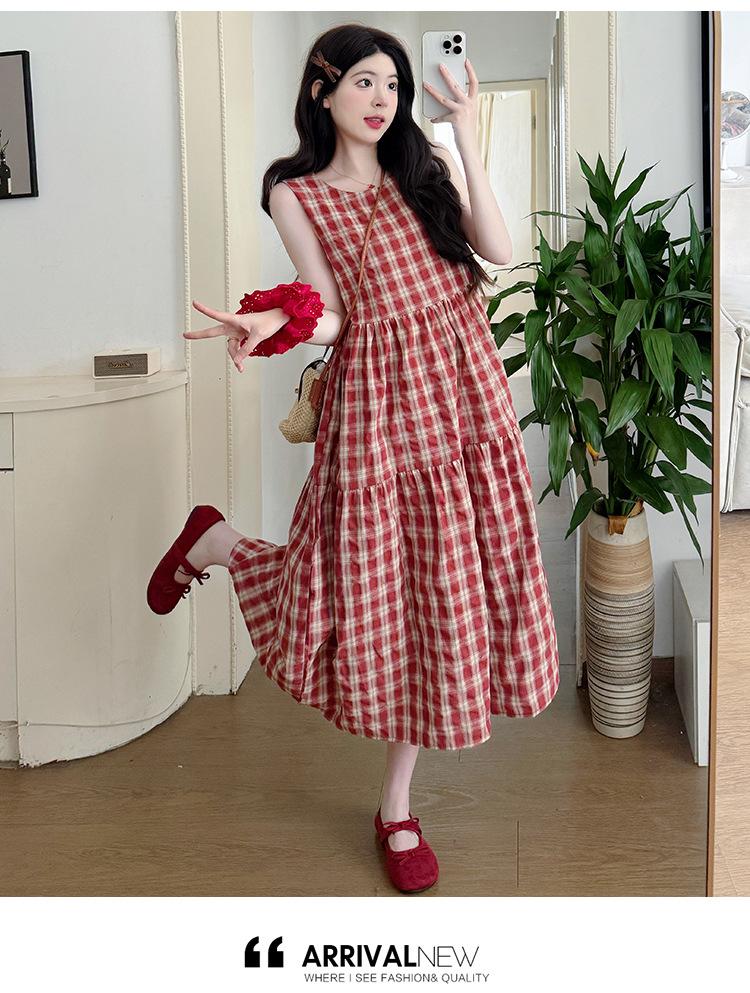 Maternidad 2025 Verano Nuevo Moda Coreana Suelto Cuello Redondo Sencillo Estilo Occidental Lindo Cuadros Vestido para Mujeres Embarazadas