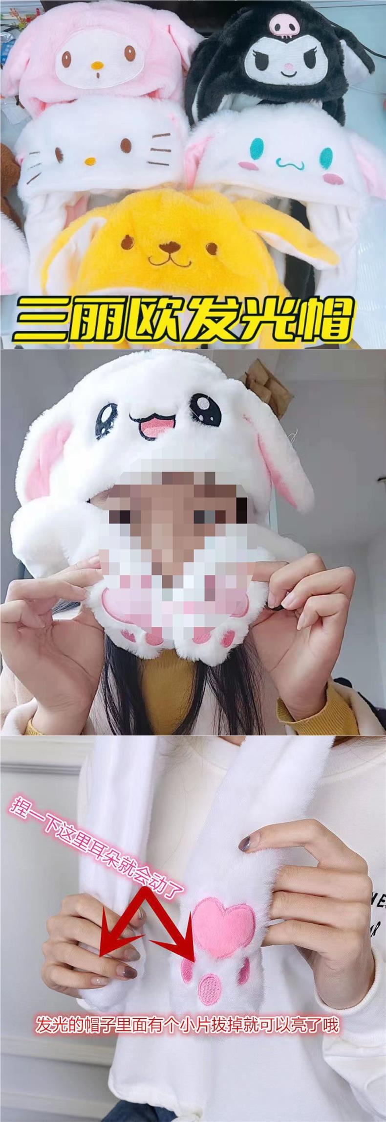 Sombrero luminoso de peluche Sanrio Yugui dog sombrero de kulomi orejas cálidas un pellizco moverá el sombrero lindo