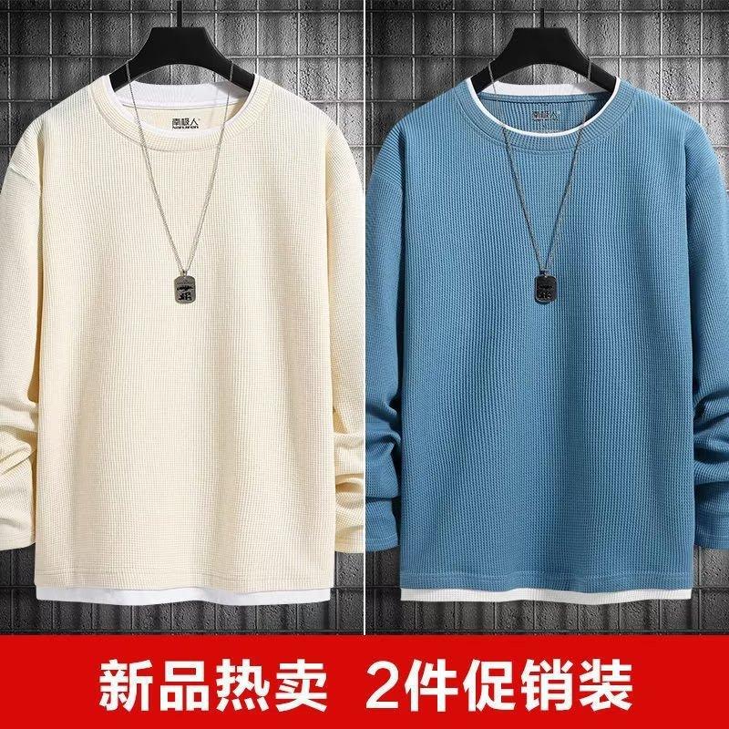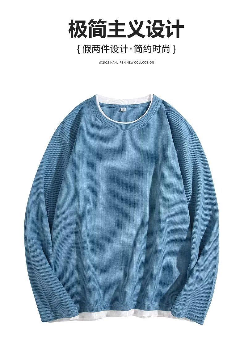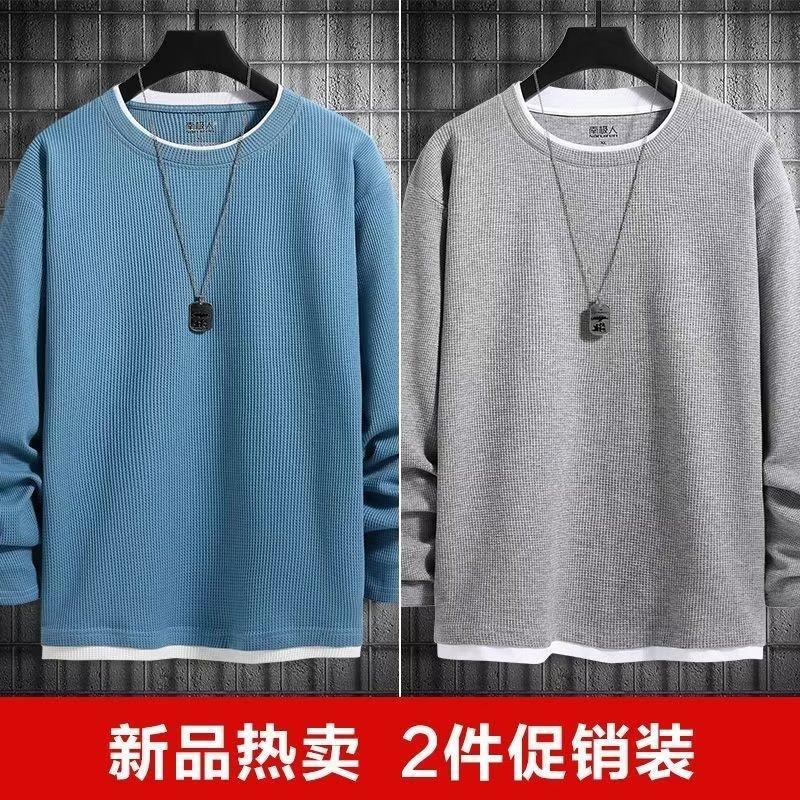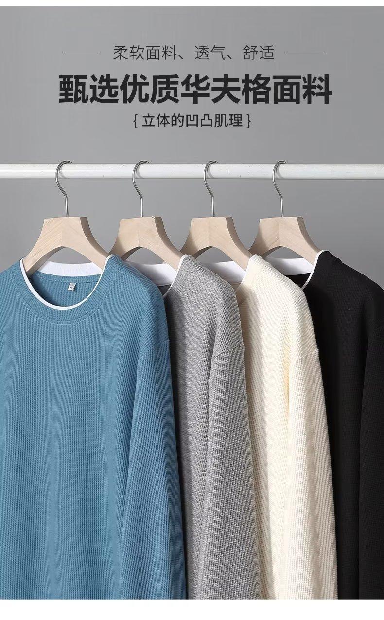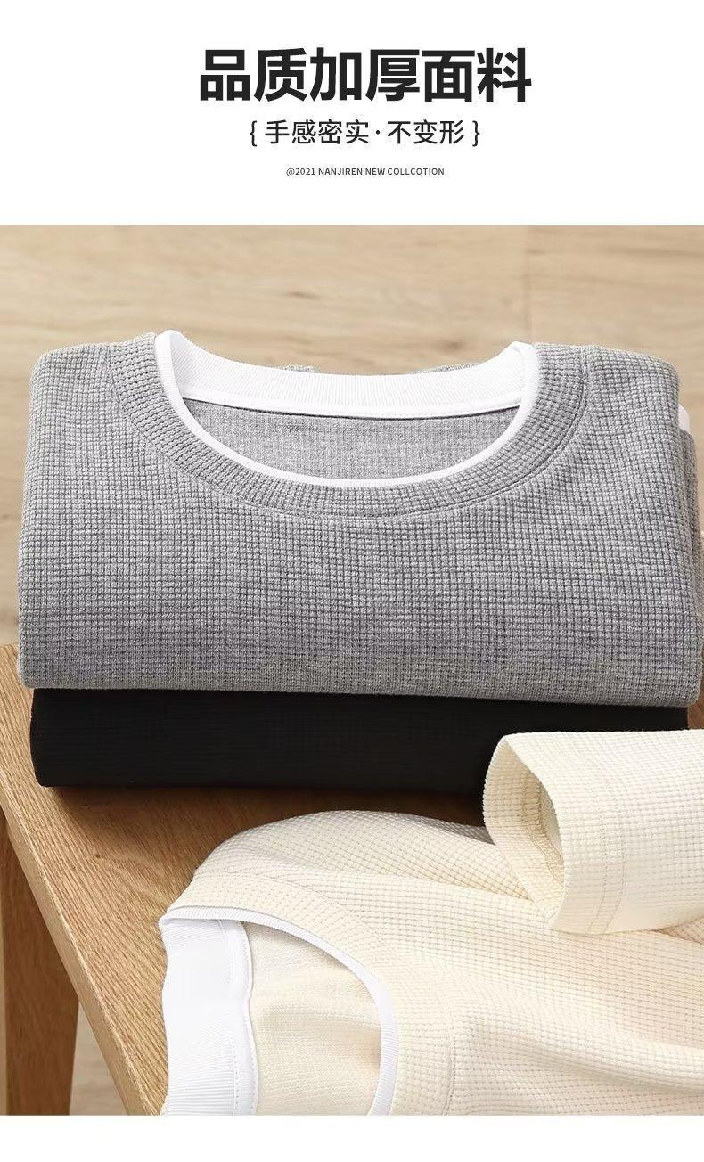 Suéter de otoño tipo waffle de dos piezas falsas de manga larga para parejas de hombres y mujeres, chaqueta de primavera y otoño con camisa casual nueva