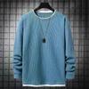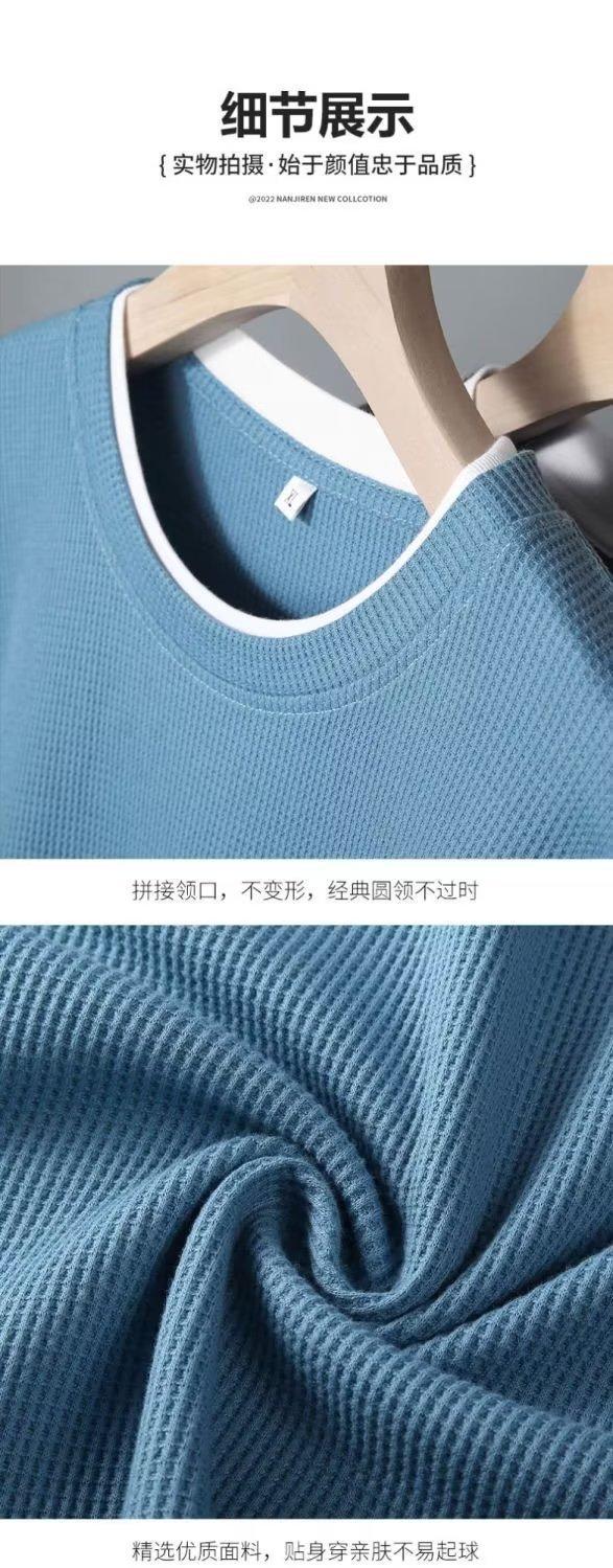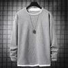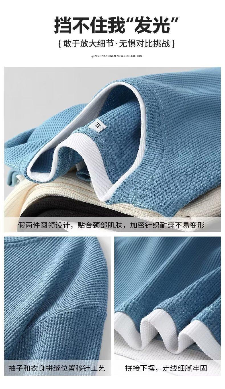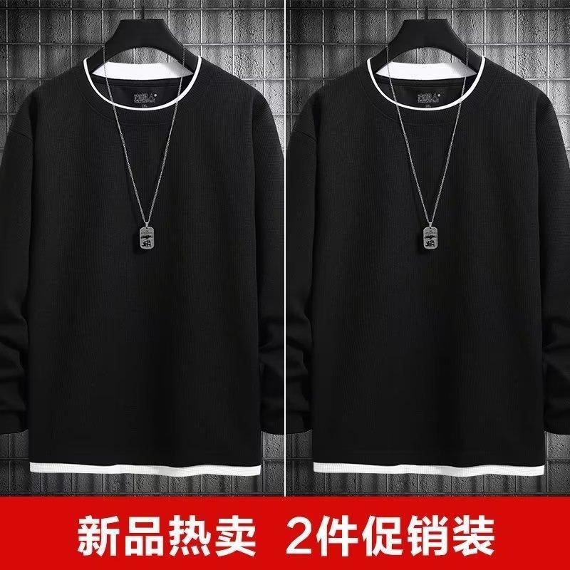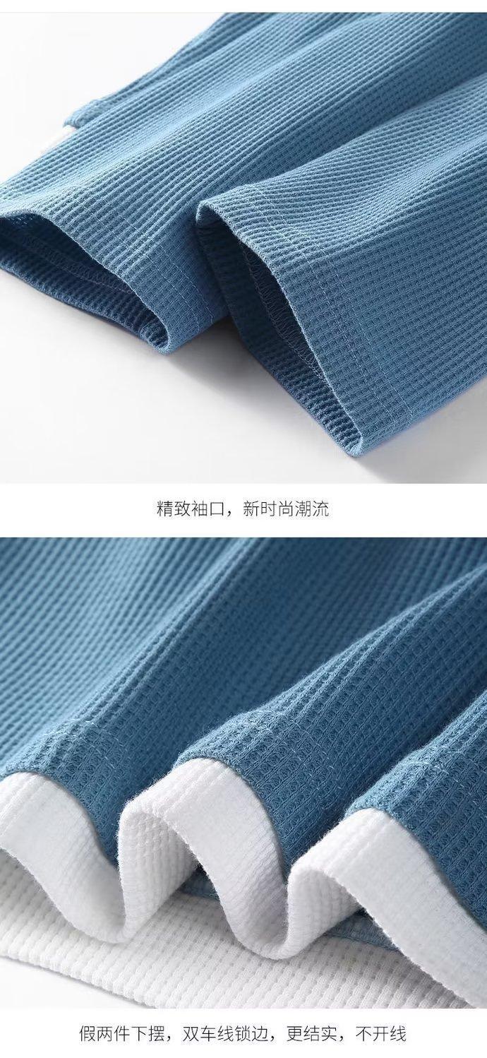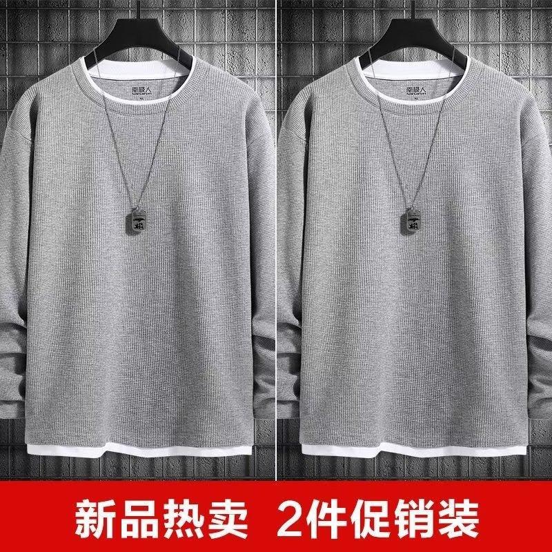 Suéter de otoño tipo waffle de dos piezas falsas de manga larga para parejas de hombres y mujeres, chaqueta de primavera y otoño con camisa casual nueva