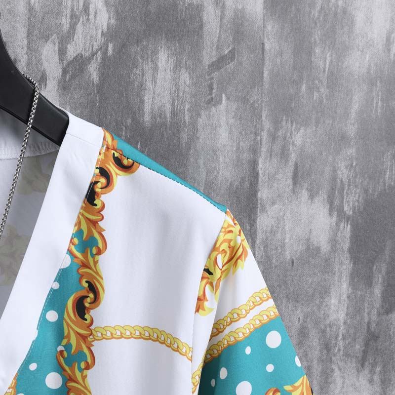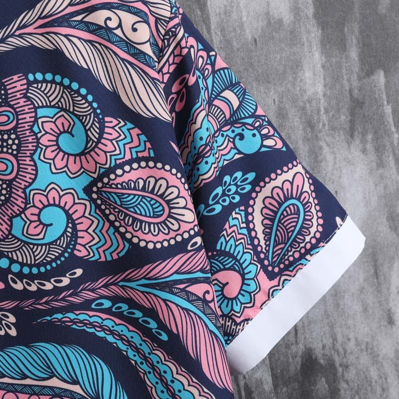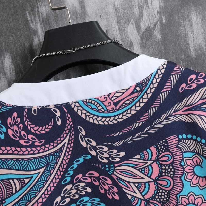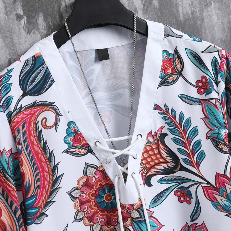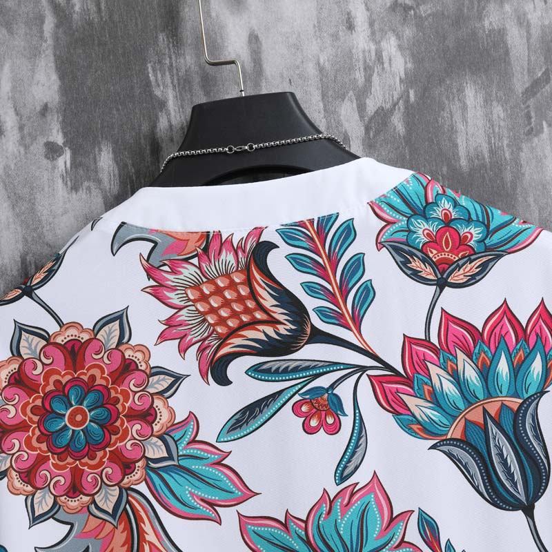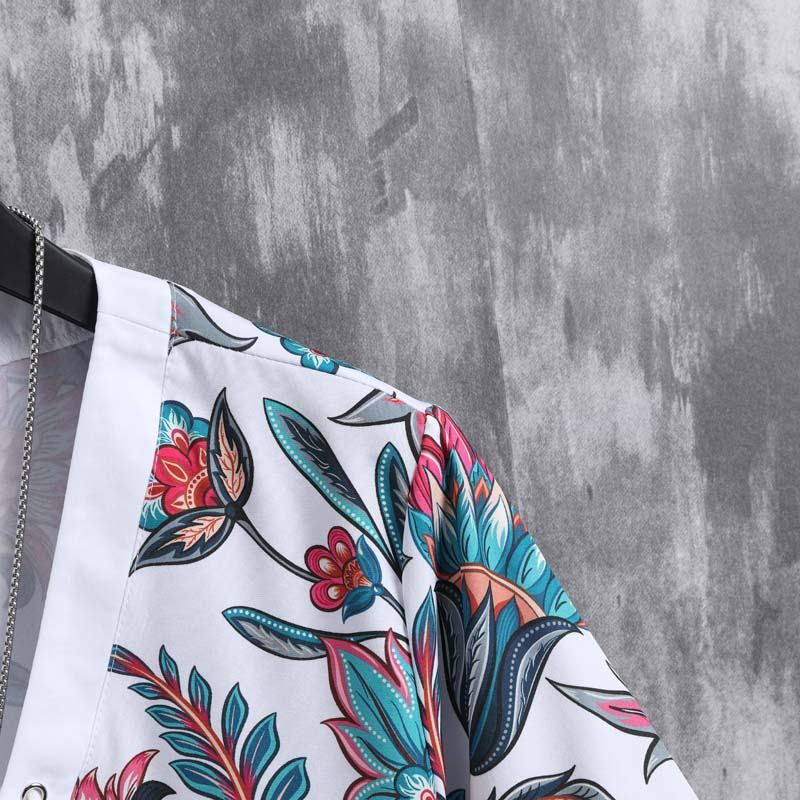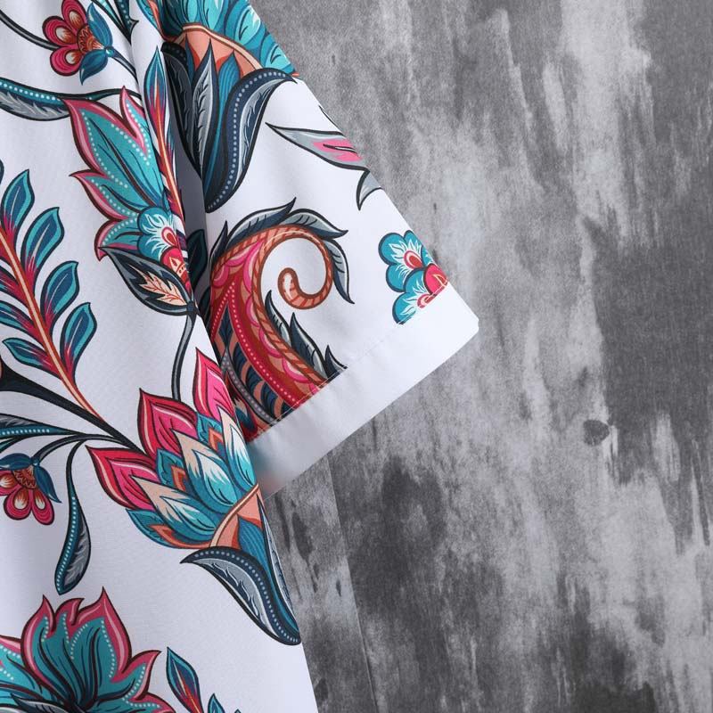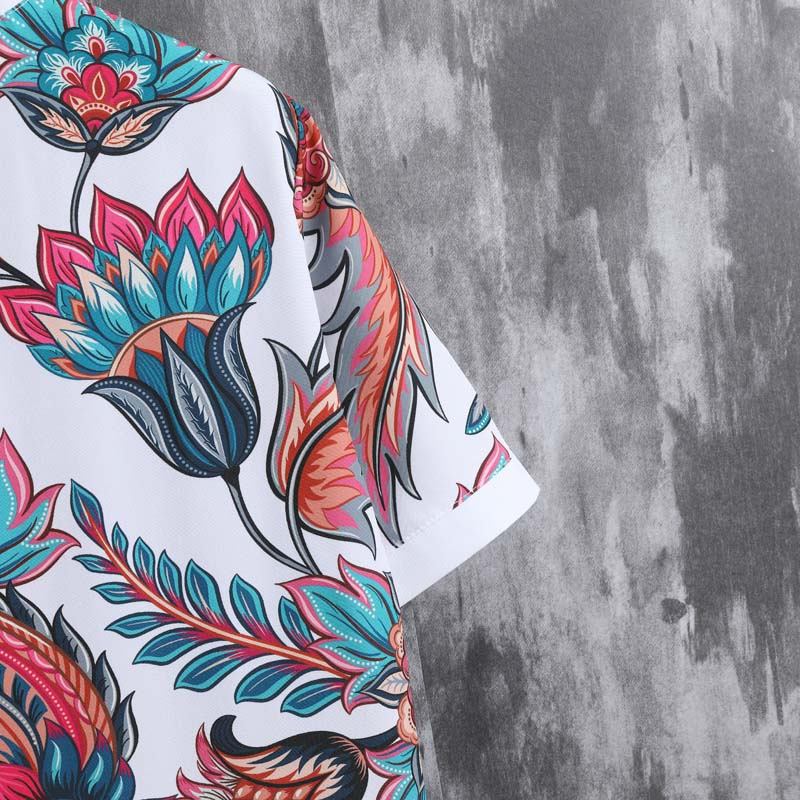 2025 Exportación Talla Europea Verano Nuevo Moda Hombre Trendy Casual Suelta Micro-Elástica Floral Camisa de Manga Corta para Hombre