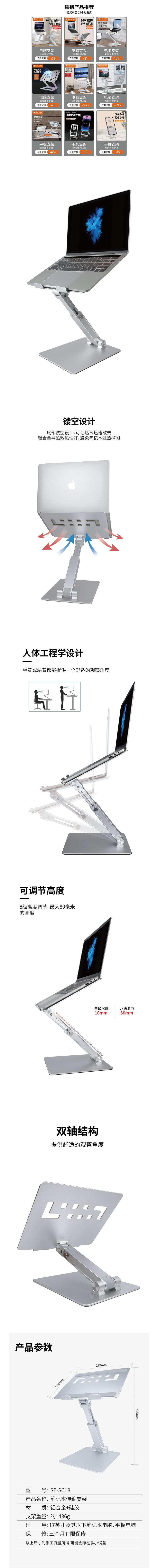 Soporte Portátil para Laptop Elevador de Escritorio Plegable Ajustable Telescópico Base de Enfriamiento Soporte para Mac