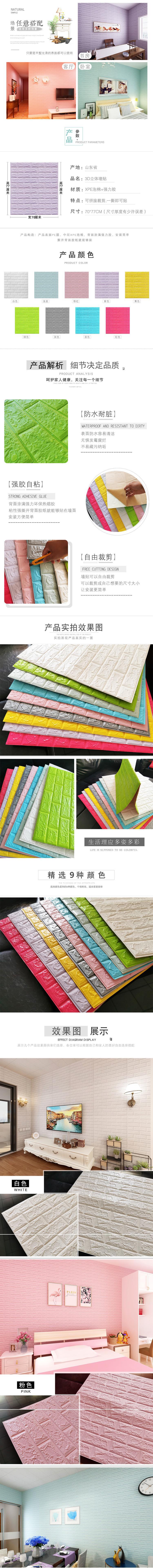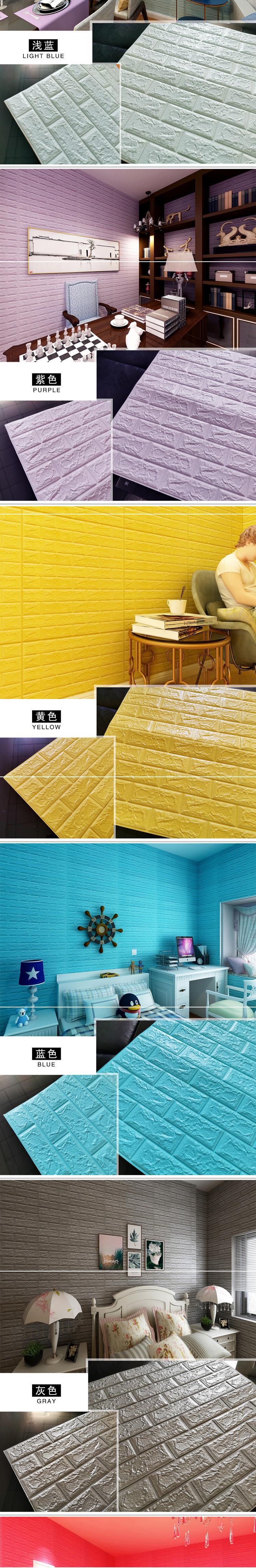 Papel Tapiz Autoadhesivo Dormitorio 3D Estéreo Adhesivo de Pared Dormitorio Cálido Papel Tapiz Pared de Fondo Patrón Ladrillo de Espuma Decorativo Adhesivo a Prueba de Humedad