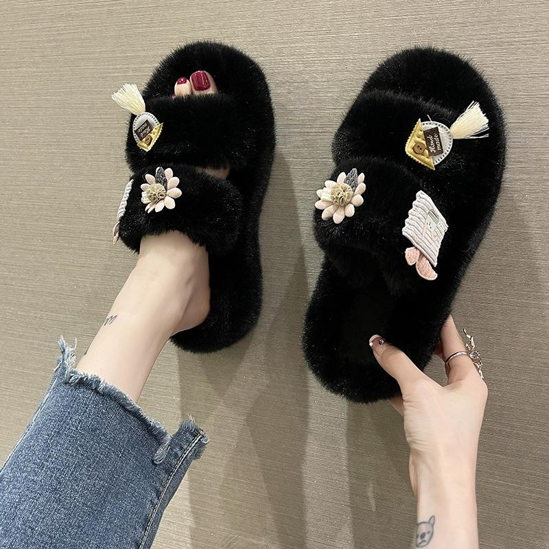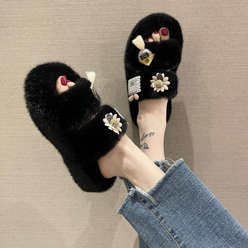 Zapatos Mao Mao Diseño Original Nicho Otoño e Invierno Nuevo Abrigo Zapatillas Mao Mao 2024 Combinan con Todo Zapatillas de Mujer Perezosas