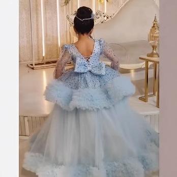 Vestidos de Niñas Europeos y Americanos 2025 Invierno Nuevo Transfronterizo Manga Larga Aliexpress Pasarela Actuación Vestido Infantil Vestido de Princesa