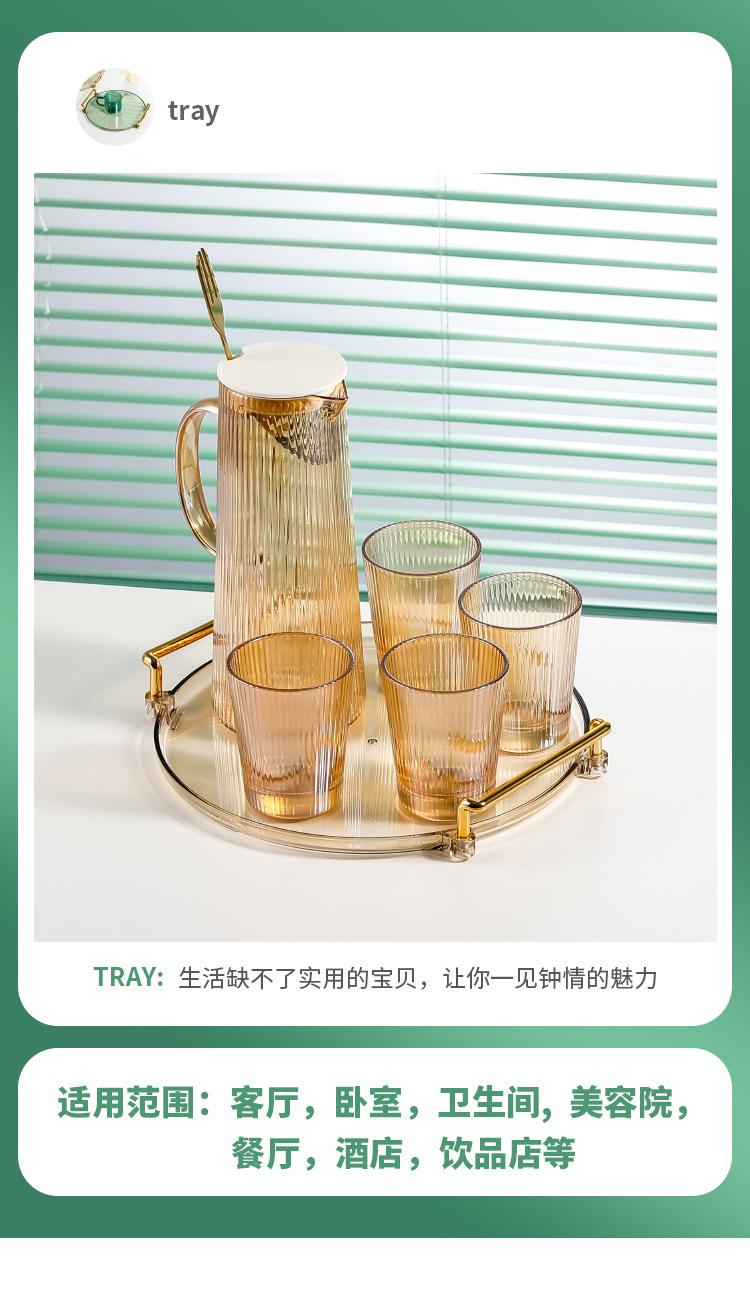 Bandeja de Lujo Ligero, Bandeja de Té, Bandeja para Tazas de Té para Sala de Estar en Casa, Bandeja Redonda para Frutas, Bandeja de Té, Bandeja para Vasos de Agua, Bandeja de Almacenamiento
