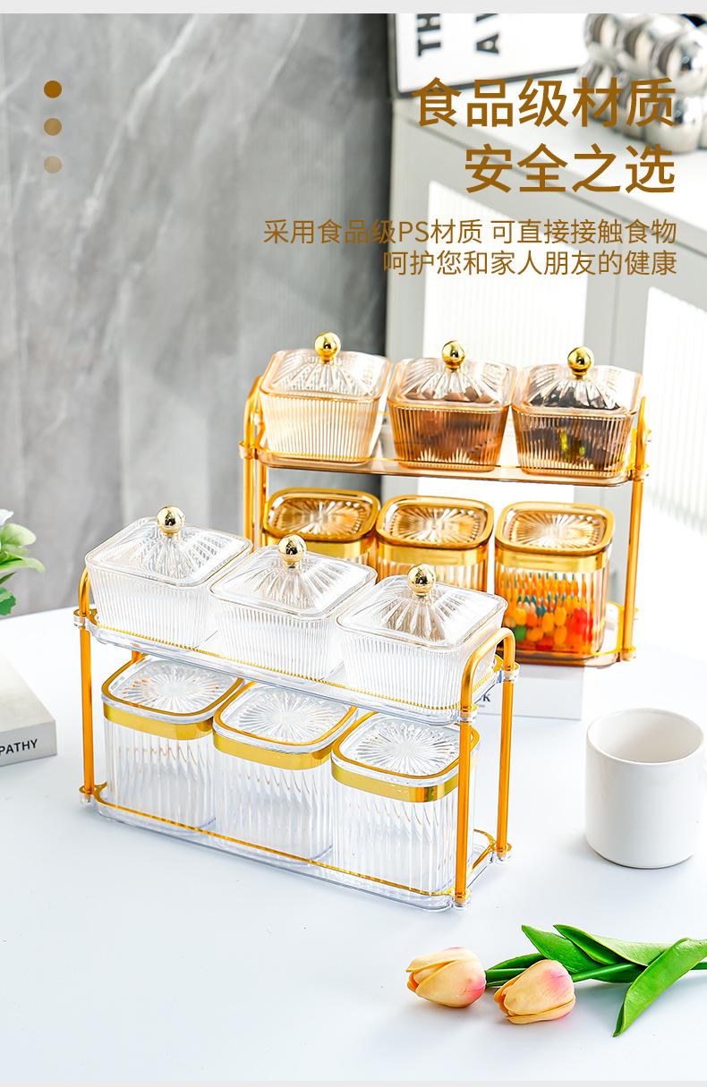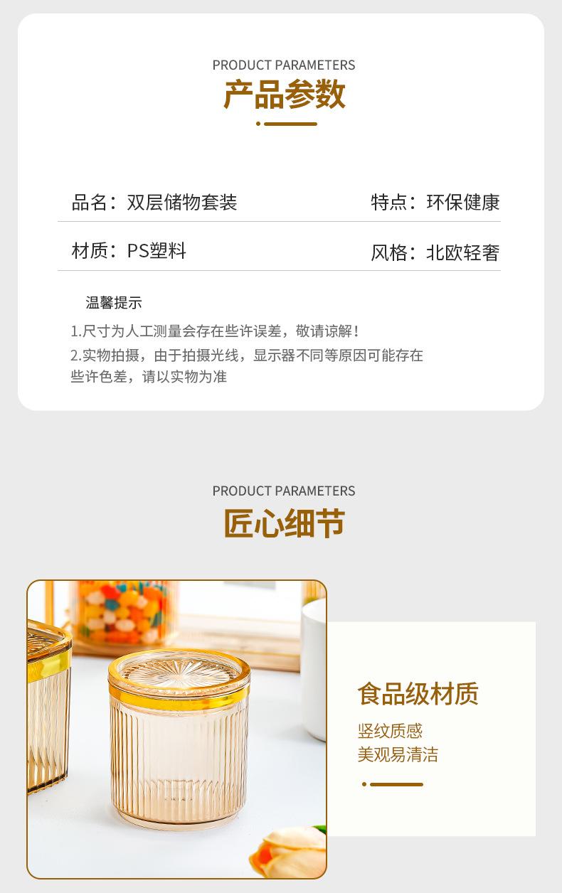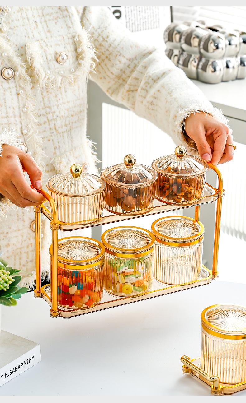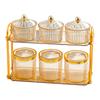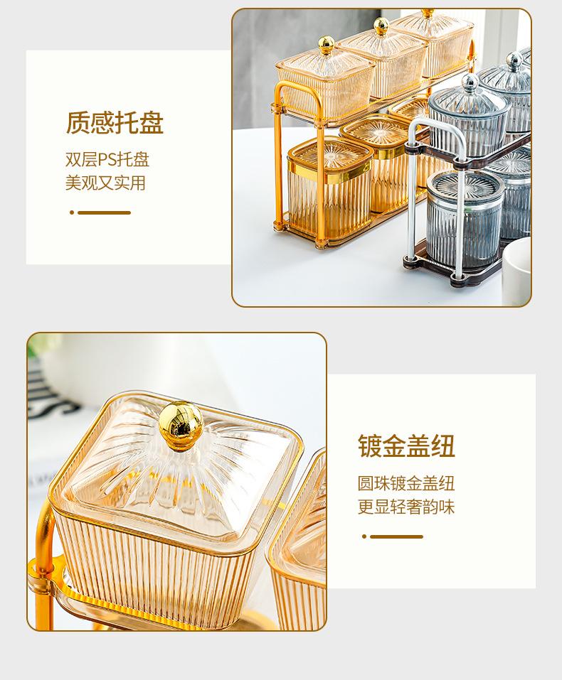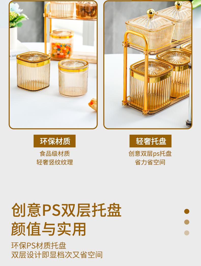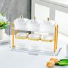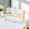 Amber gold edge double striped aluminum strip 3 dishes 3 round sealed jars, Transparent gold edge double strip...