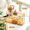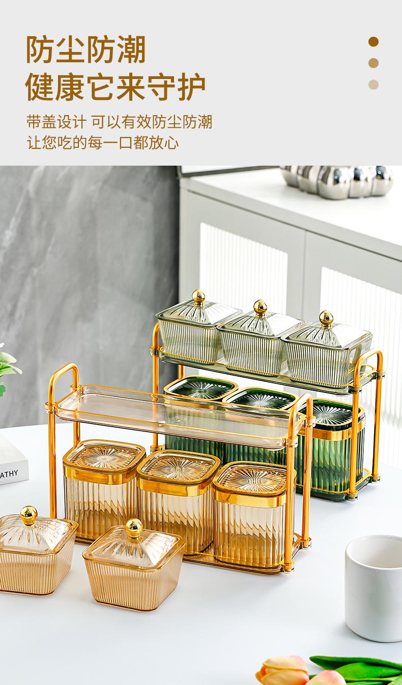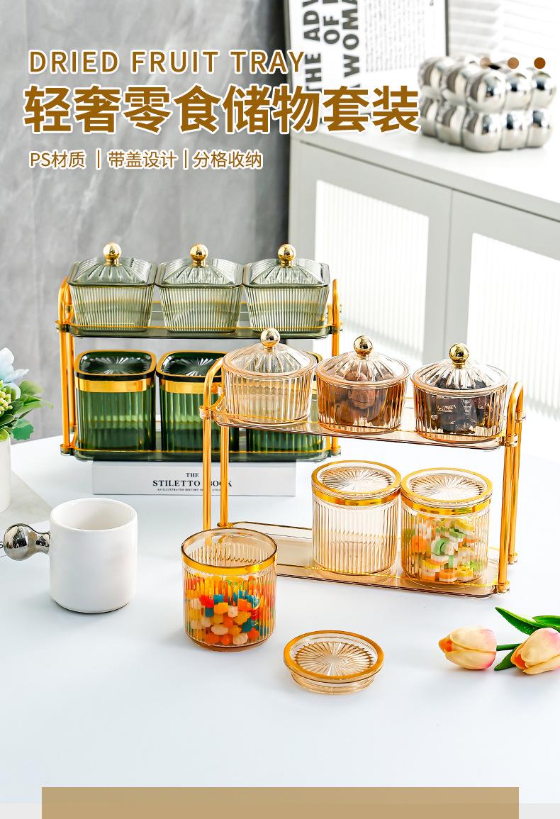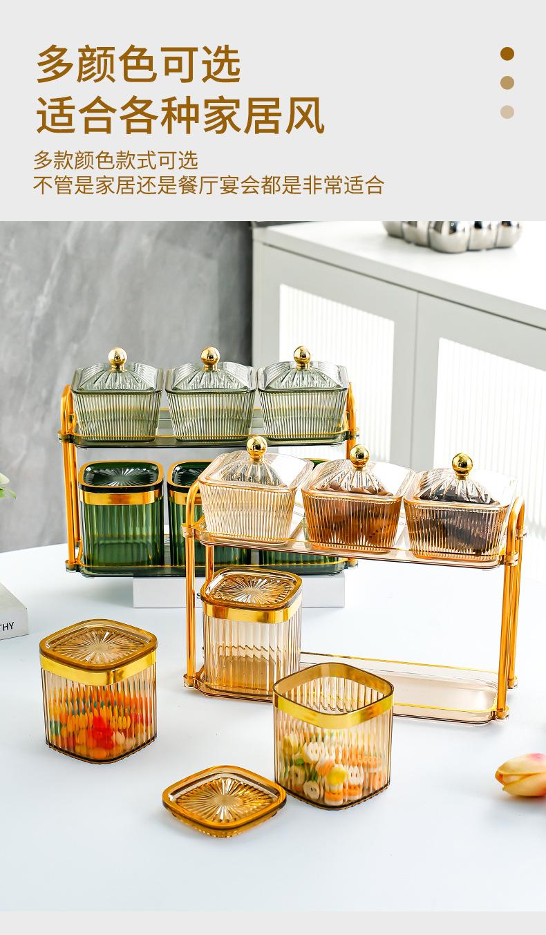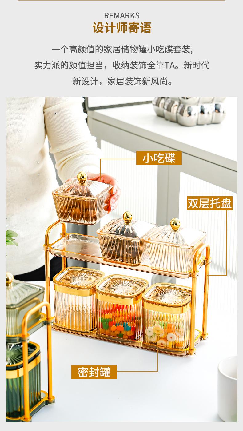 Amber gold edge double striped aluminum strip 3 dishes 3 round sealed jars, Transparent gold edge double strip...