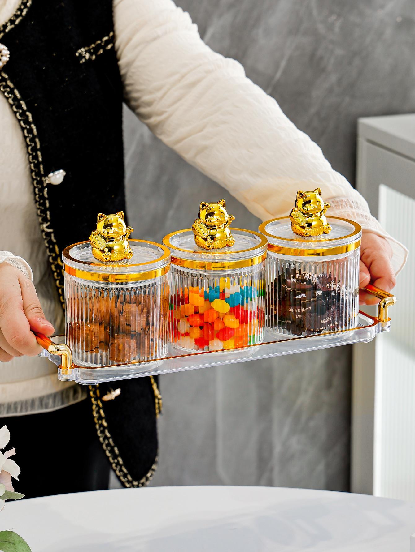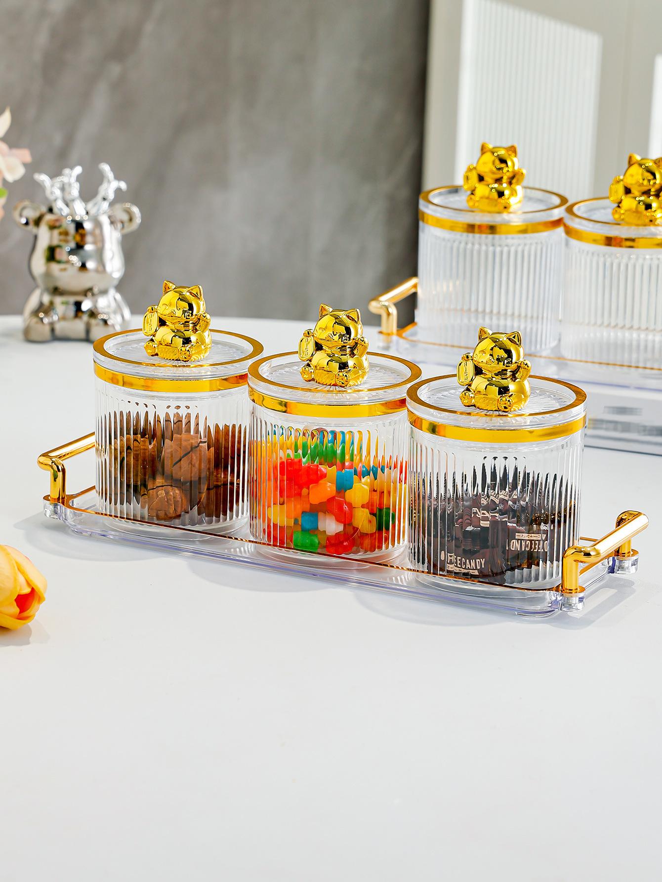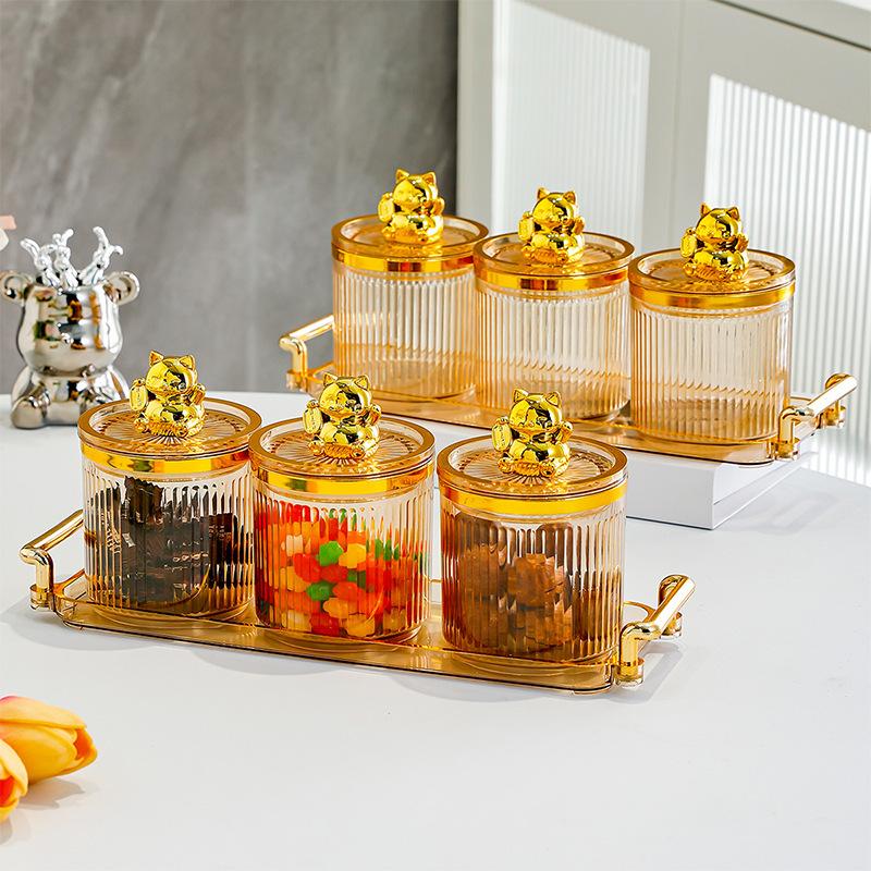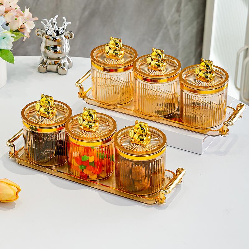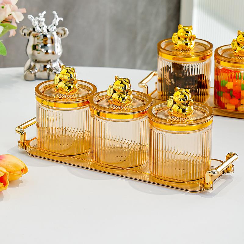 Transparent tray 3 cans Phnom Penh Fortune Cat, Amber Tray 3 Tins Phnom Penh Fortune Cat