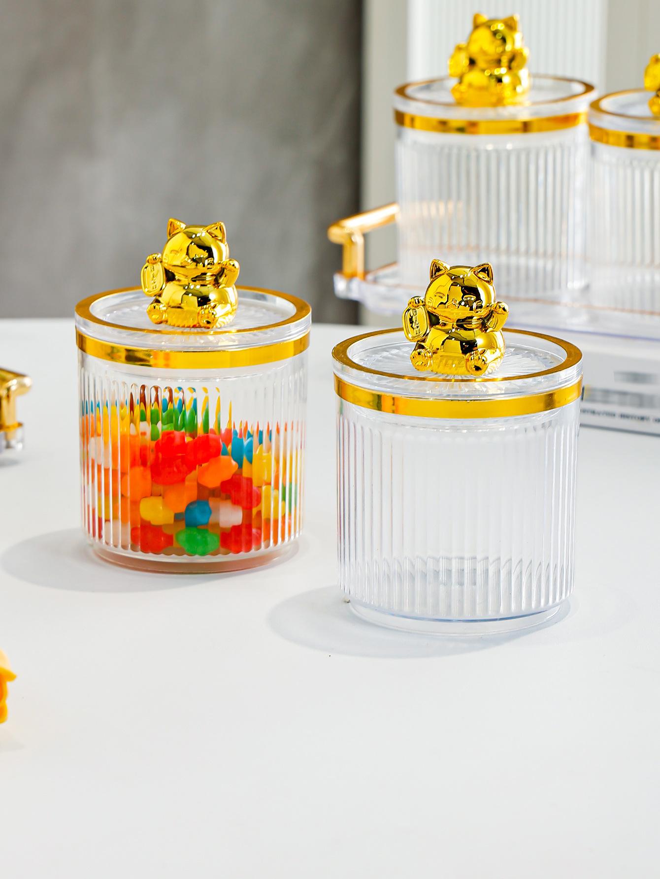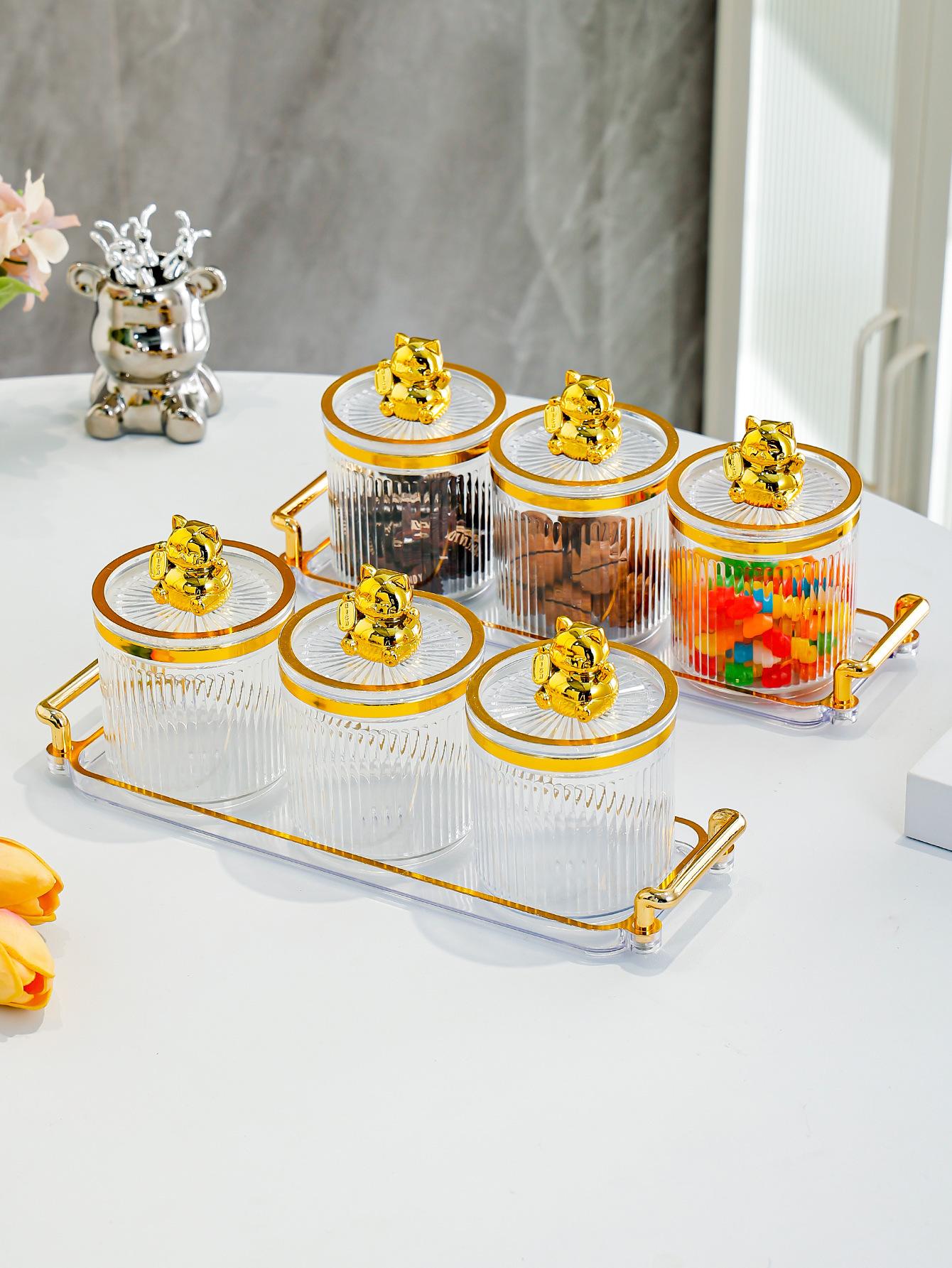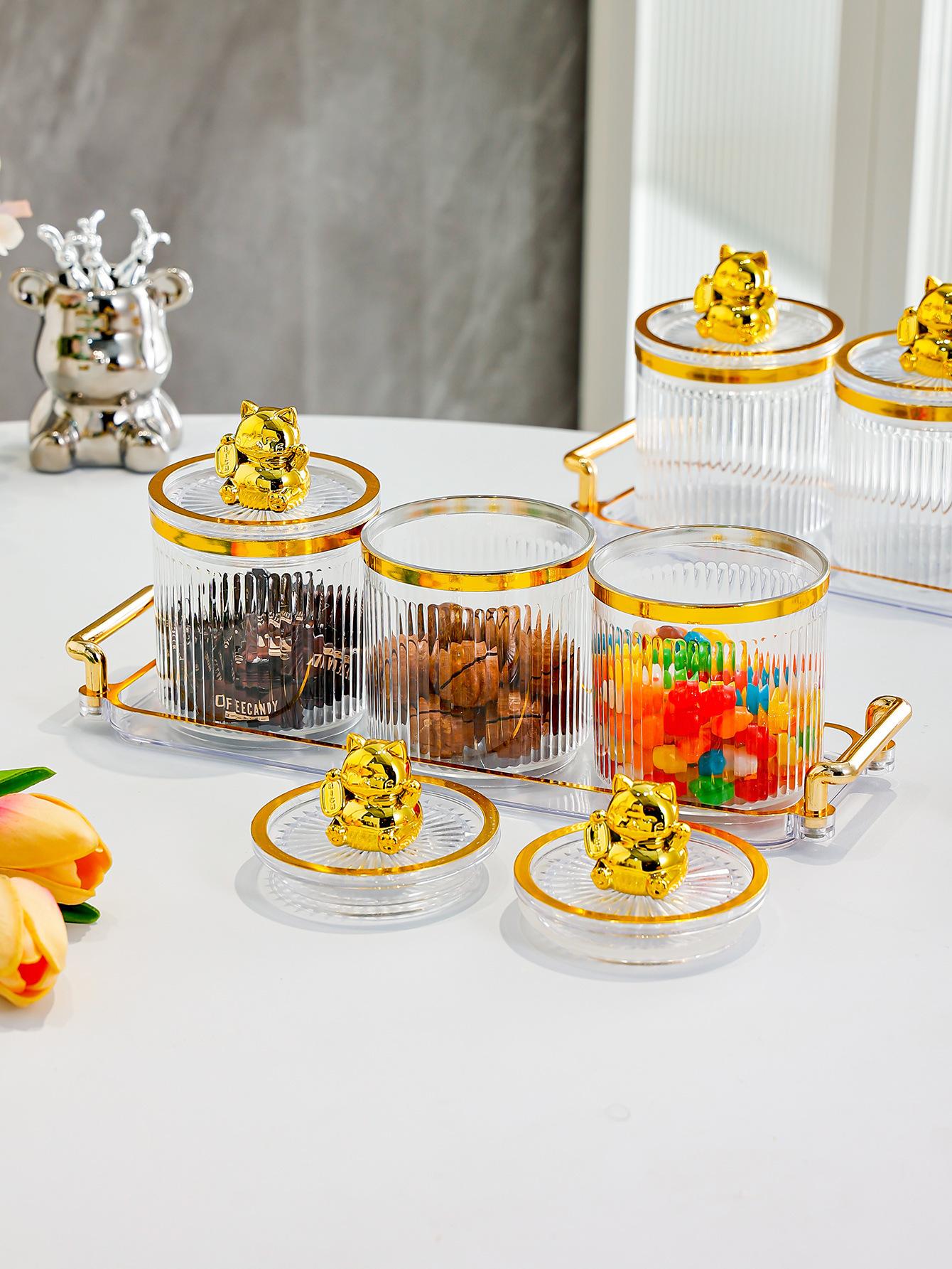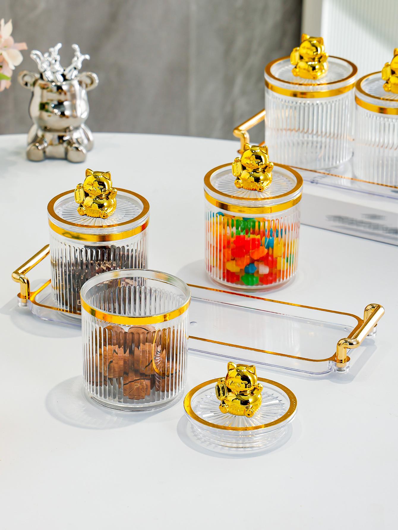 Transparent tray 3 cans Phnom Penh Fortune Cat, Amber Tray 3 Tins Phnom Penh Fortune Cat