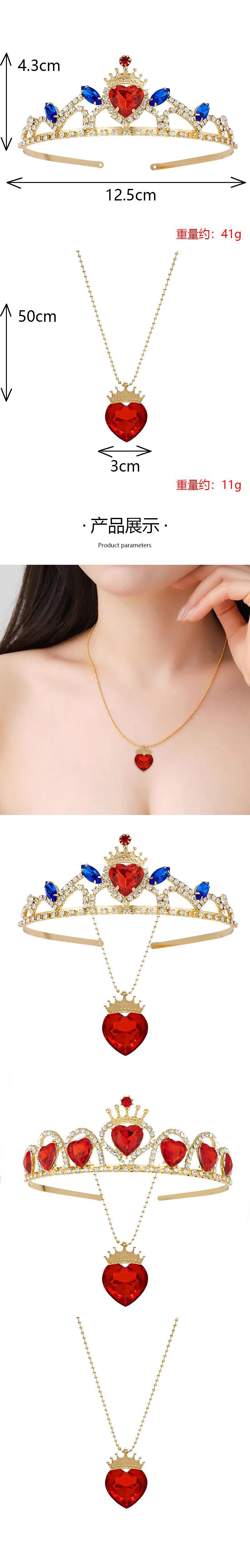 Blue marquise crown + necklace, Heart crown + necklace, Red diamond necklace, Blue horse eye crown, Heart crown