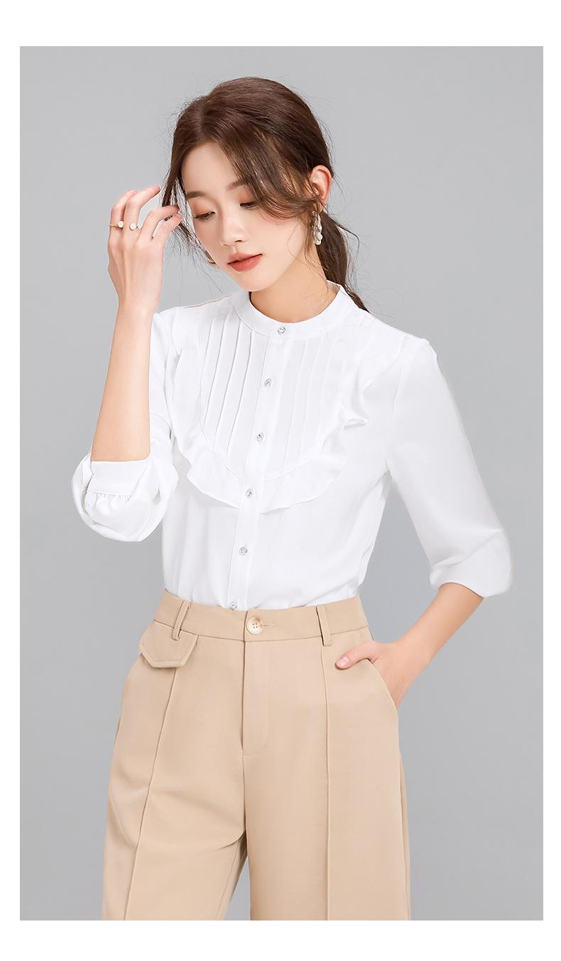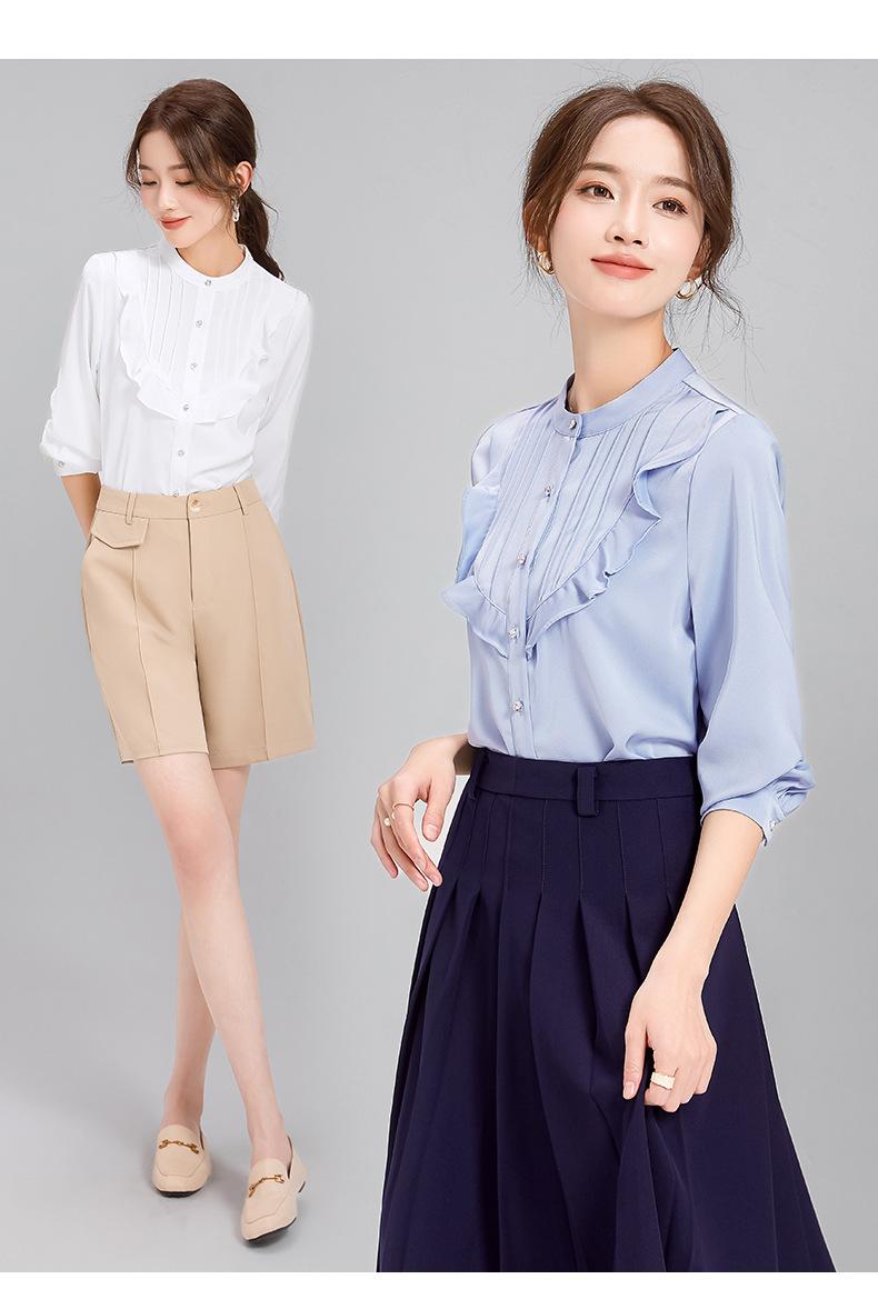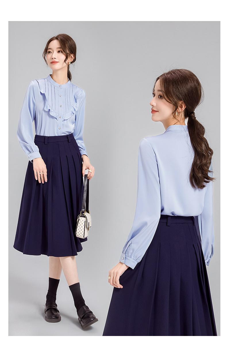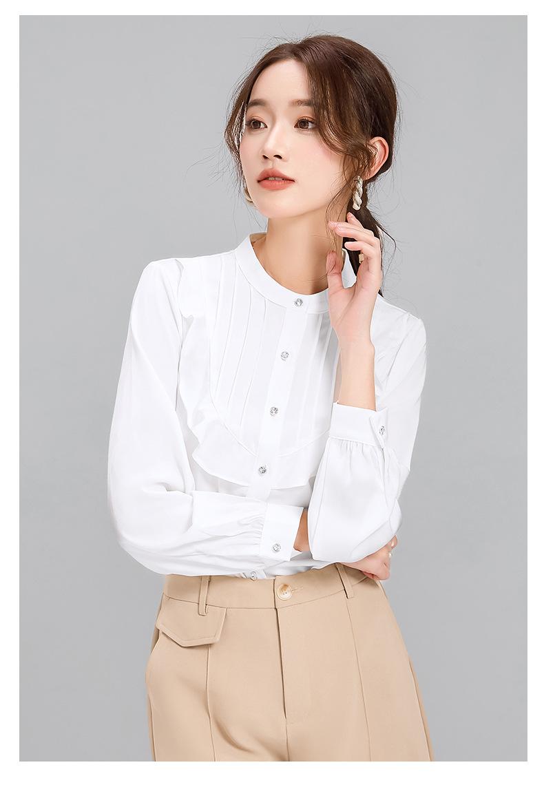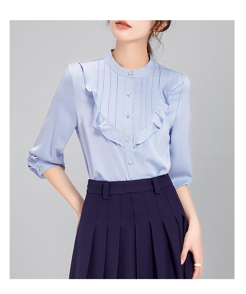 Camisa de Satén Mercerizado de Manga Larga para Mujer en Primavera y Otoño, Ropa de Trabajo Versátil para Usar como Base, Diseño de Encaje de Hoja de Loto, Tops de Moda para Mujer