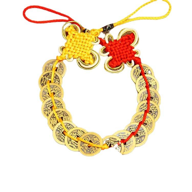 Venta al por mayor latón dinero cinco emperadores nudo chino rojo colgante cobre diez emperadores decoración hogar regalo artesanías