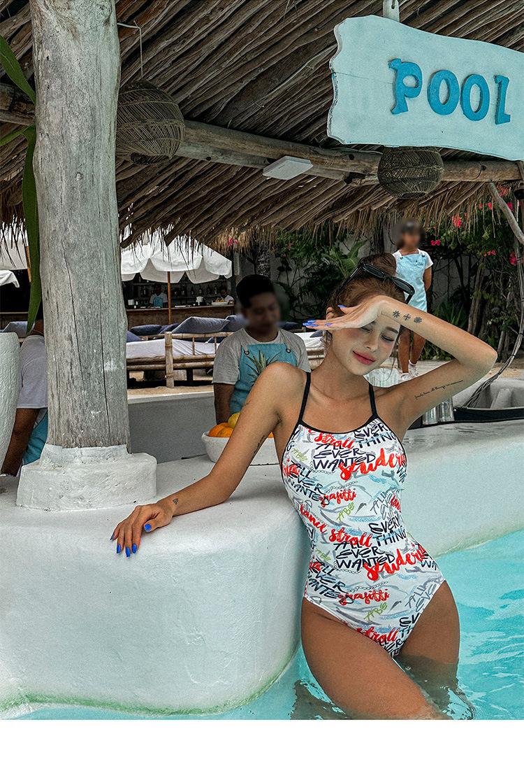 Traje de Baño Transfronterizo Europeo y Americano 2024 Nuevo Bikini Sexy de Una Pieza con Triángulo Estampado Moda Hermosa Espalda Traje de Baño de Vacaciones para Mujeres