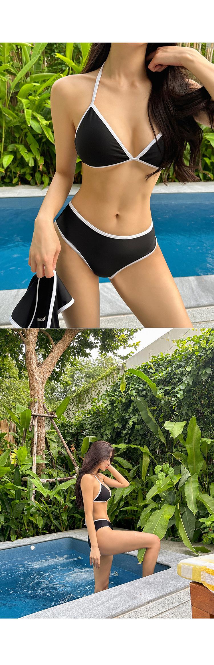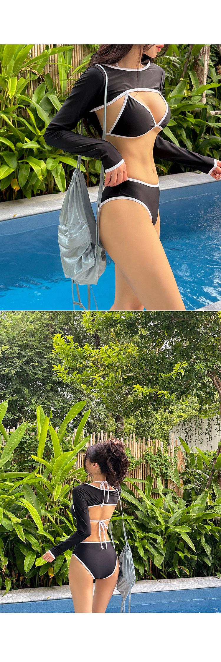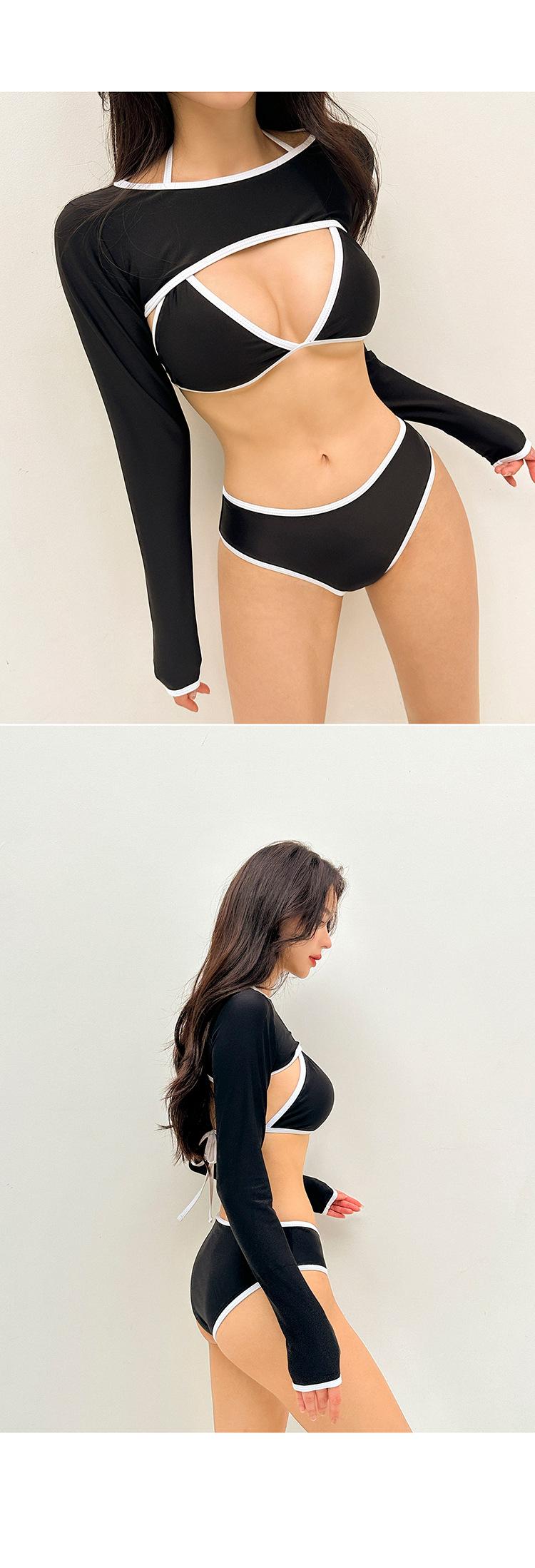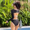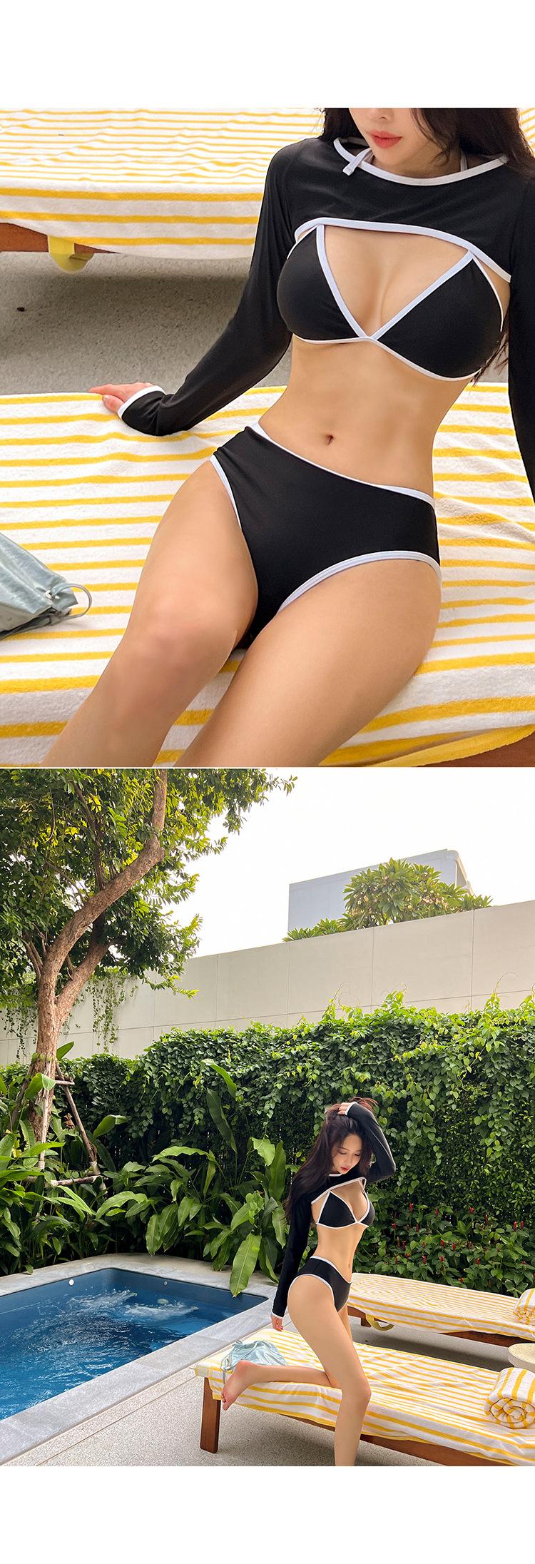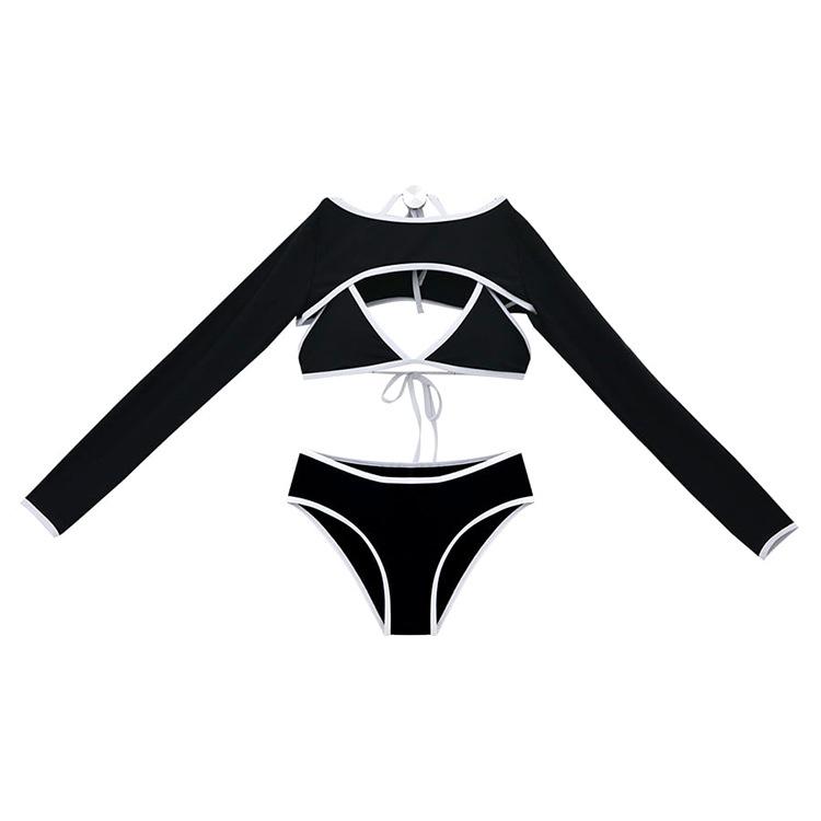 Traje de baño bikini directo de fábrica delgado dividido sexy negro manga larga de tres piezas pecho pequeño para mujer rojo de internet playa