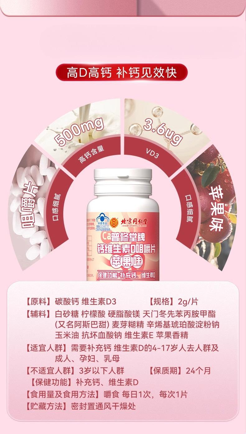 Tabletas Masticables de Calcio y Vitamina D Marca Xiu de Beijing Tongrentang Yifu Shoupu Suplemento de Calcio D Alimento para la Salud Envío Directo