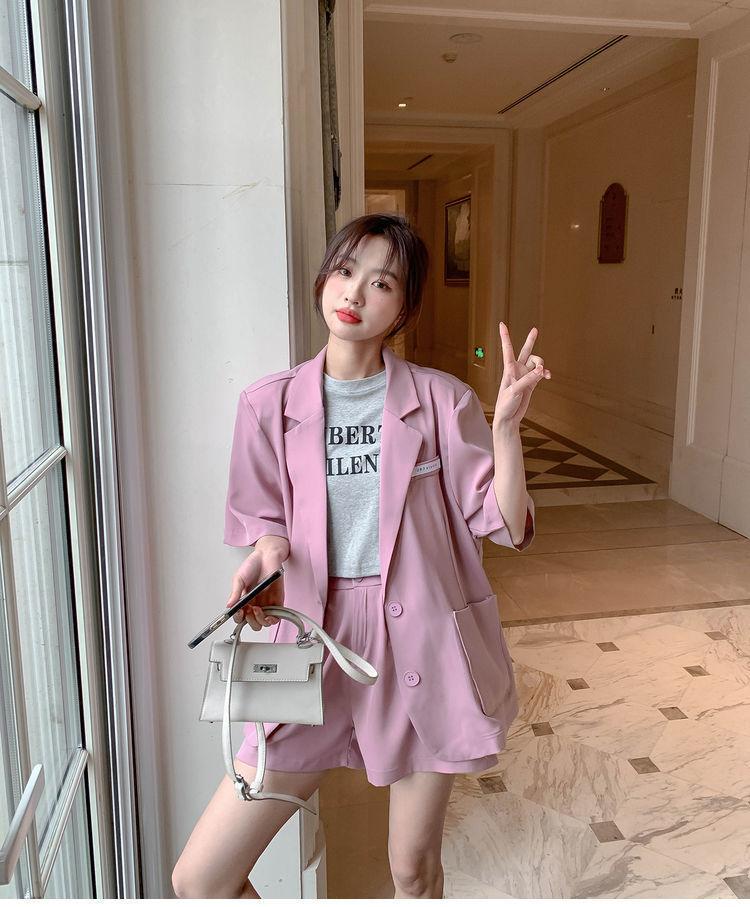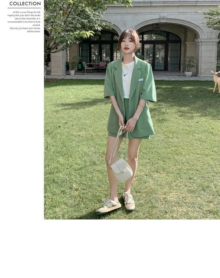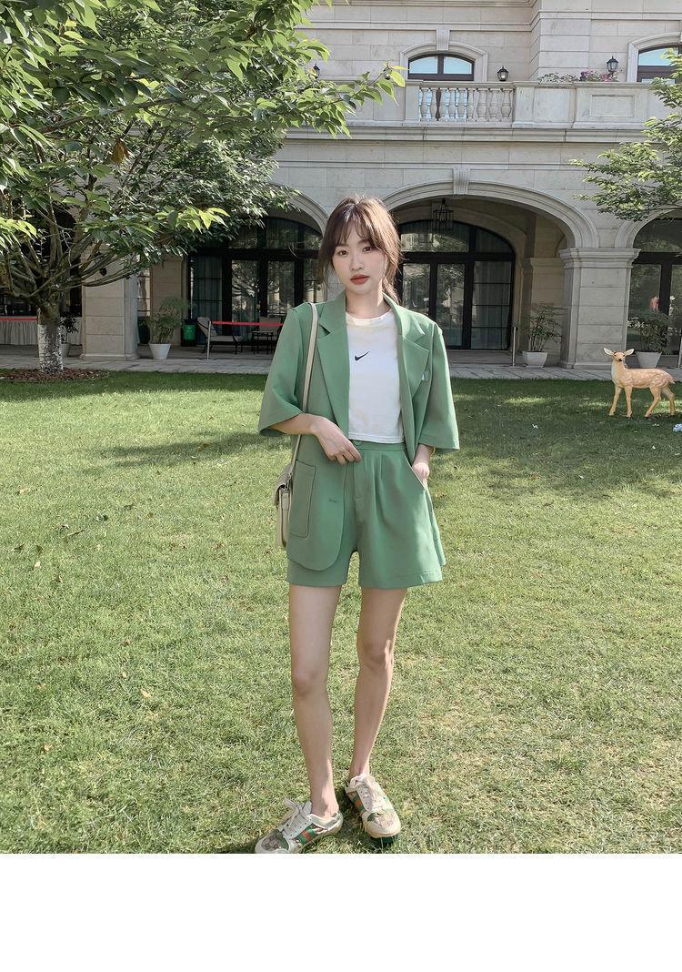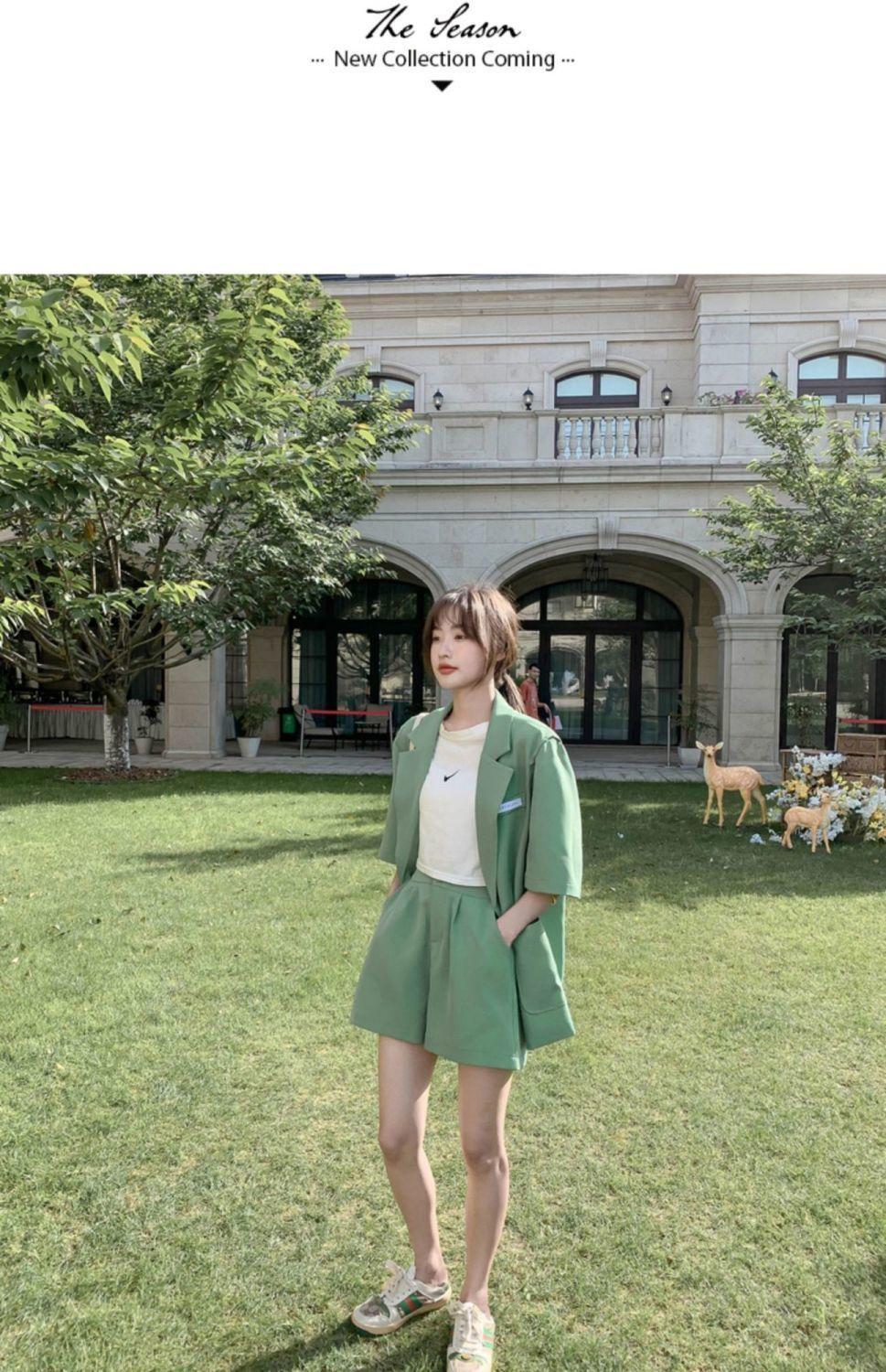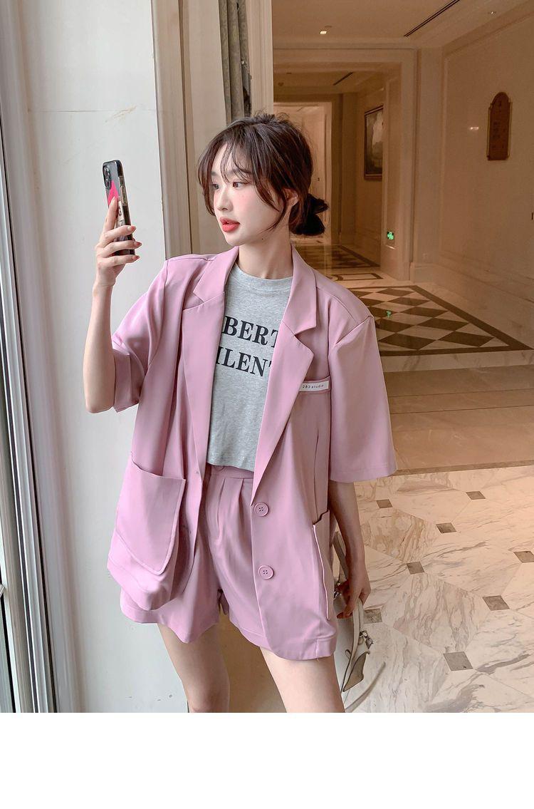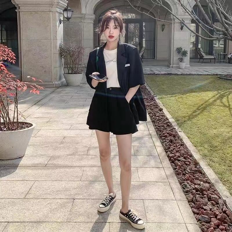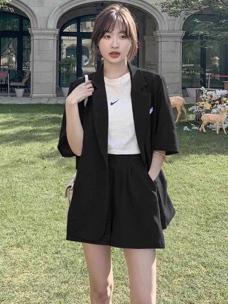 Compra Traje pequeño de moda para mujer, traje fino de verano 2025, nuevo traje informal coreano, chaqueta y pantalones cortos, conjunto de dos piezas al por mayor en Joom.pro