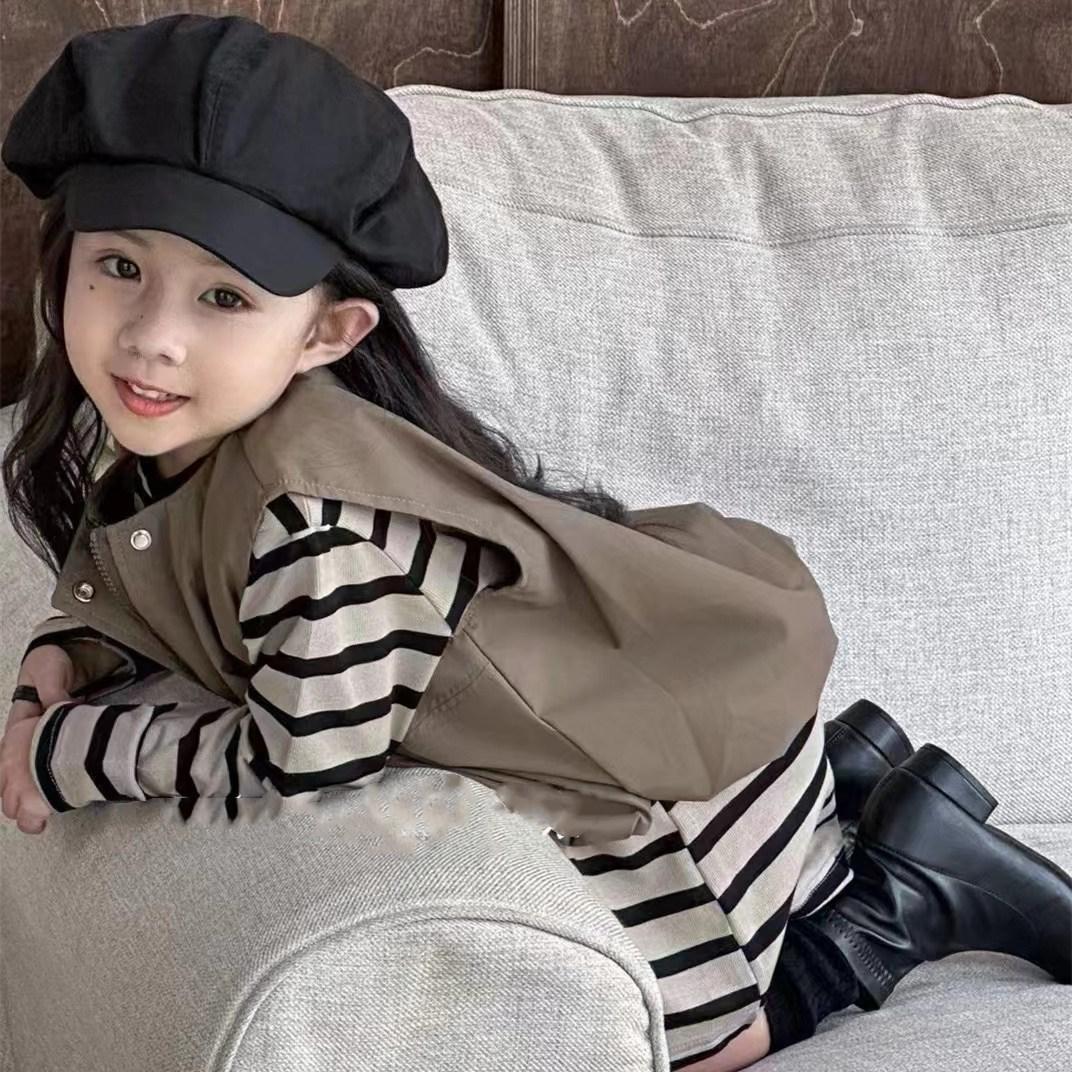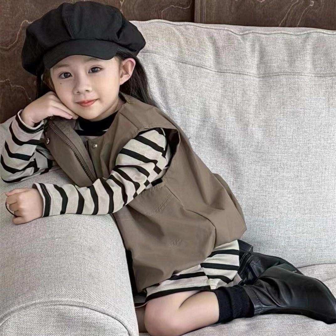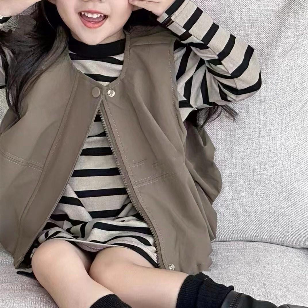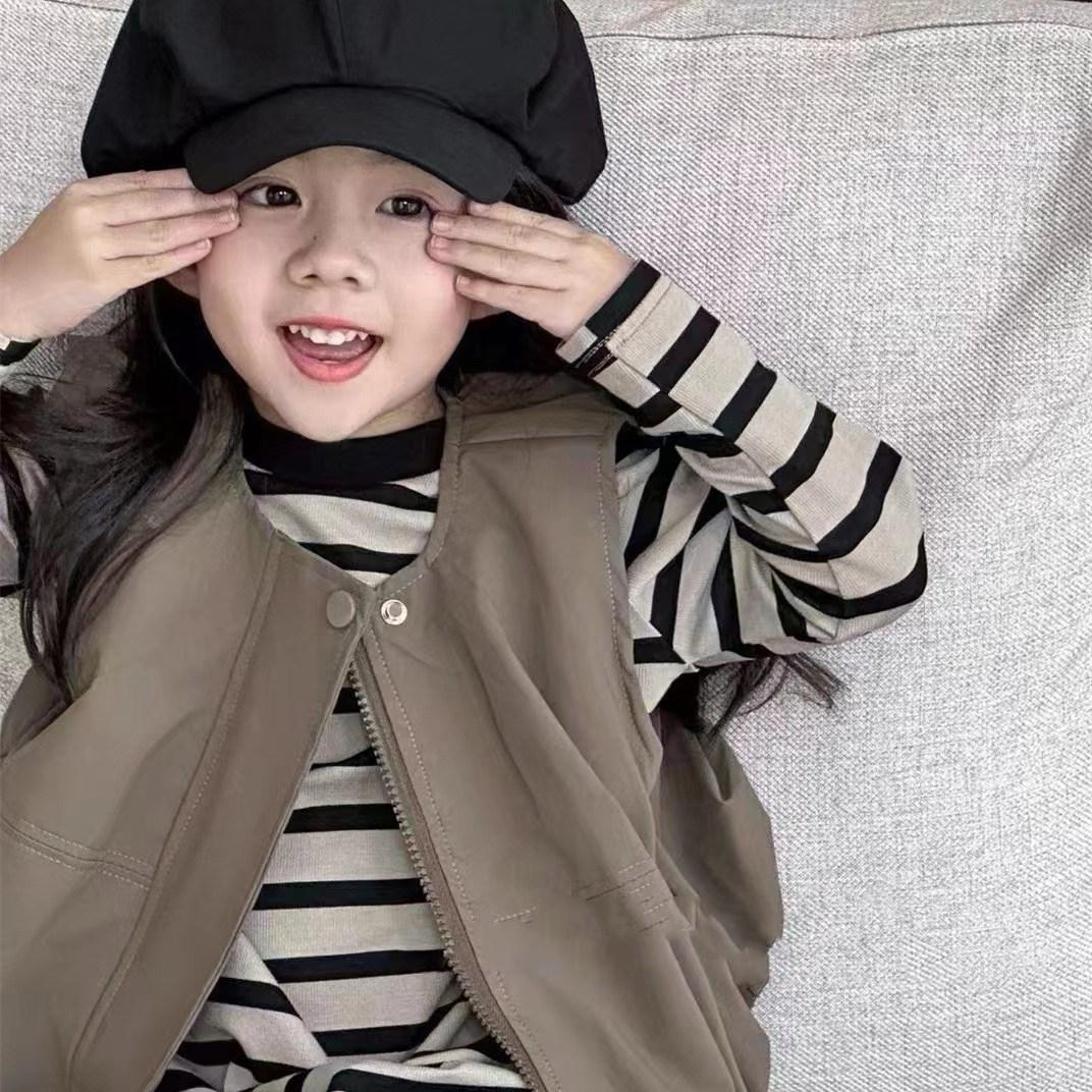Comercio Exterior Ropa para Niños al por Mayor Trajes para Niñas Primavera y Otoño 25 Nuevos Chalecos para Niños y Camisetas Básicas a Rayas Conjunto de Dos Piezas
