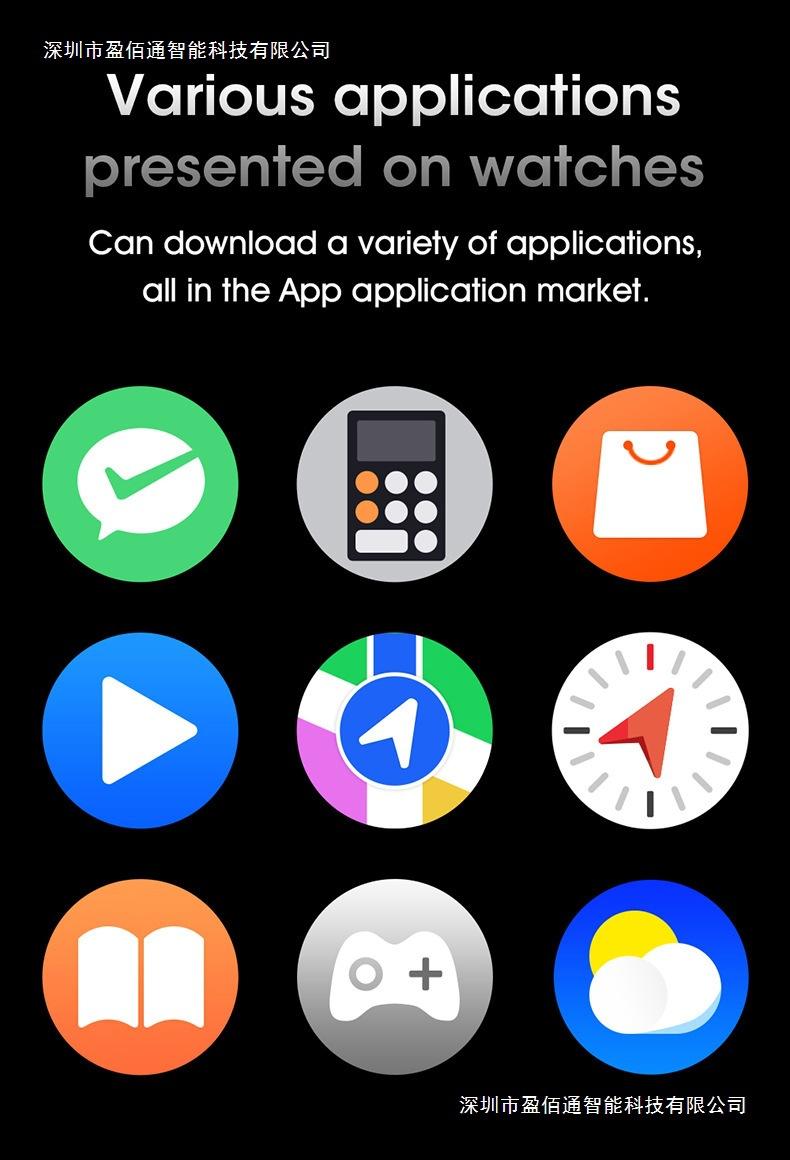 Take photos, Heart rate monitoring, Blood pressure measurement, Social entertainment, Measure body temperature...