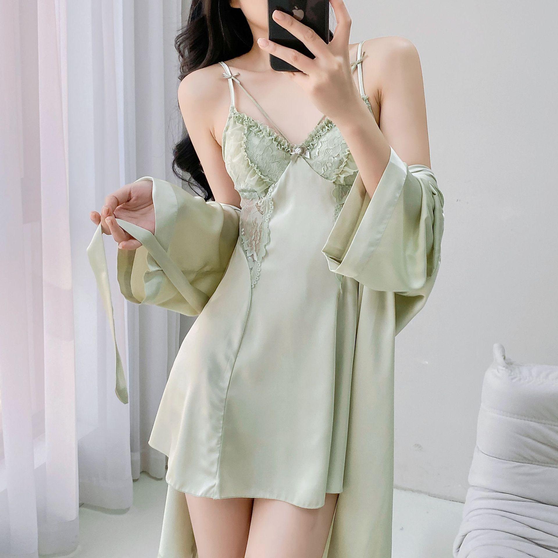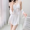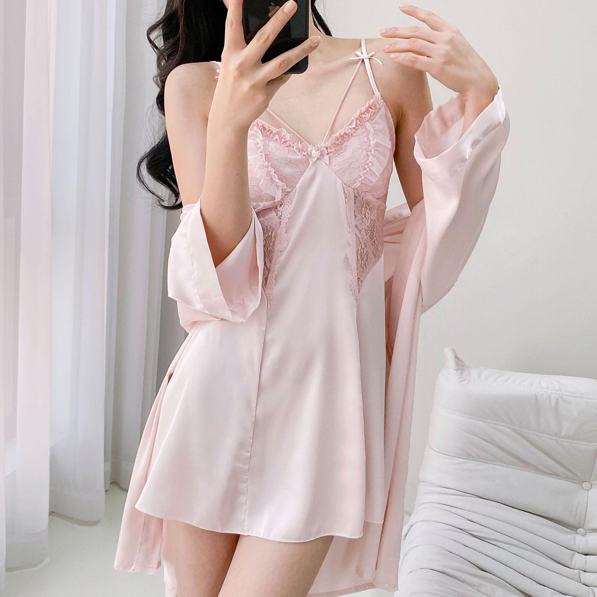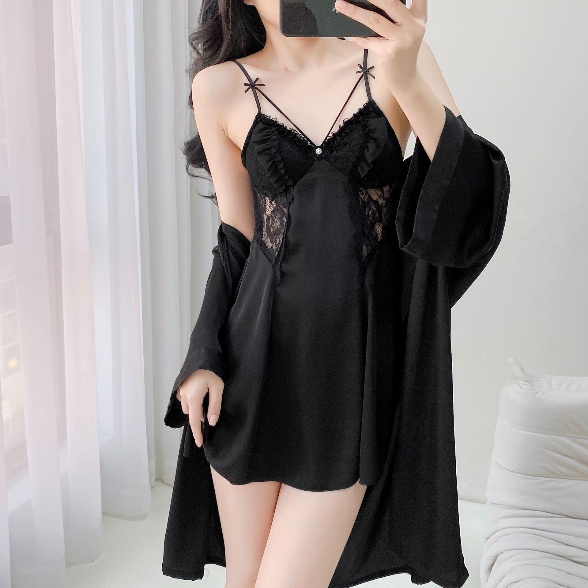 Nuevo Camisón Sexy para Mujer Primavera y Verano Camisón de Tirantes Hueco de Seda Helada Pijama Puro Lujuria con Almohadillas para el Busto Ropa para el Hogar