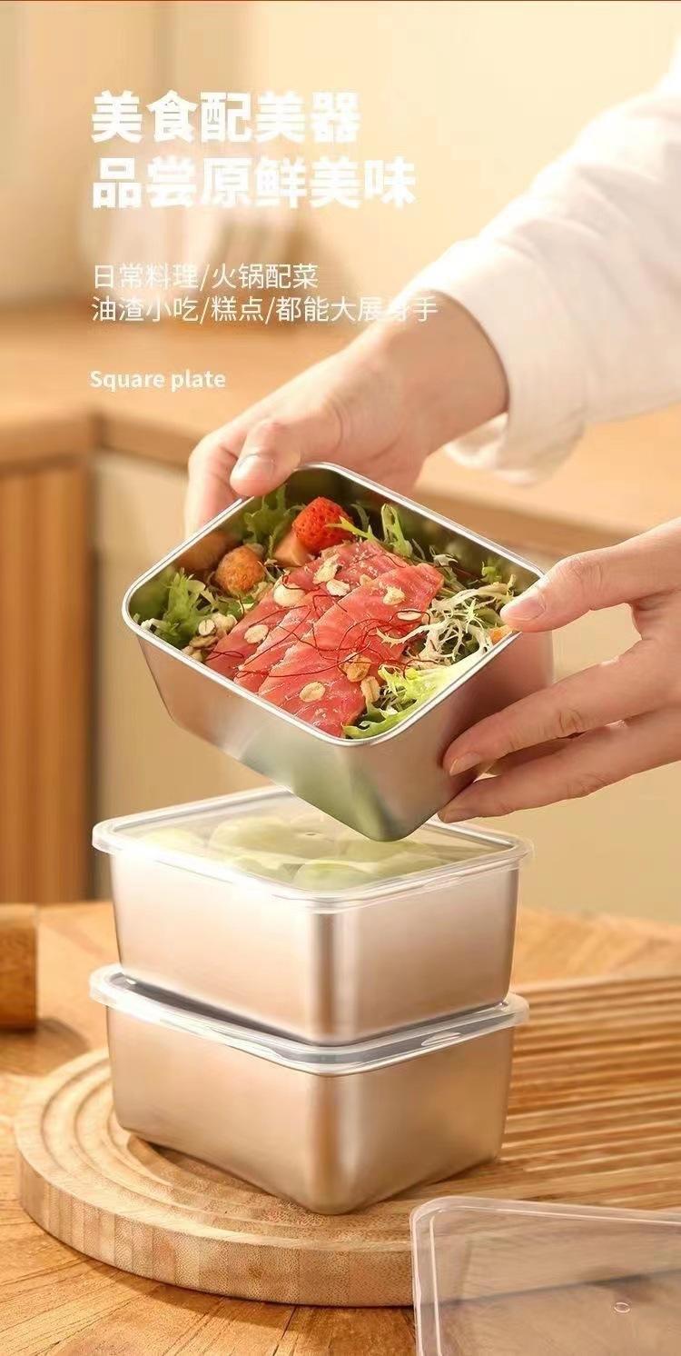 Plato cuadrado de acero inoxidable engrosado con tapa, rectangular, magnético, pequeño, para el hogar, bandeja para conservar la frescura, plato para exhibir toallas, cuenco cuadrado