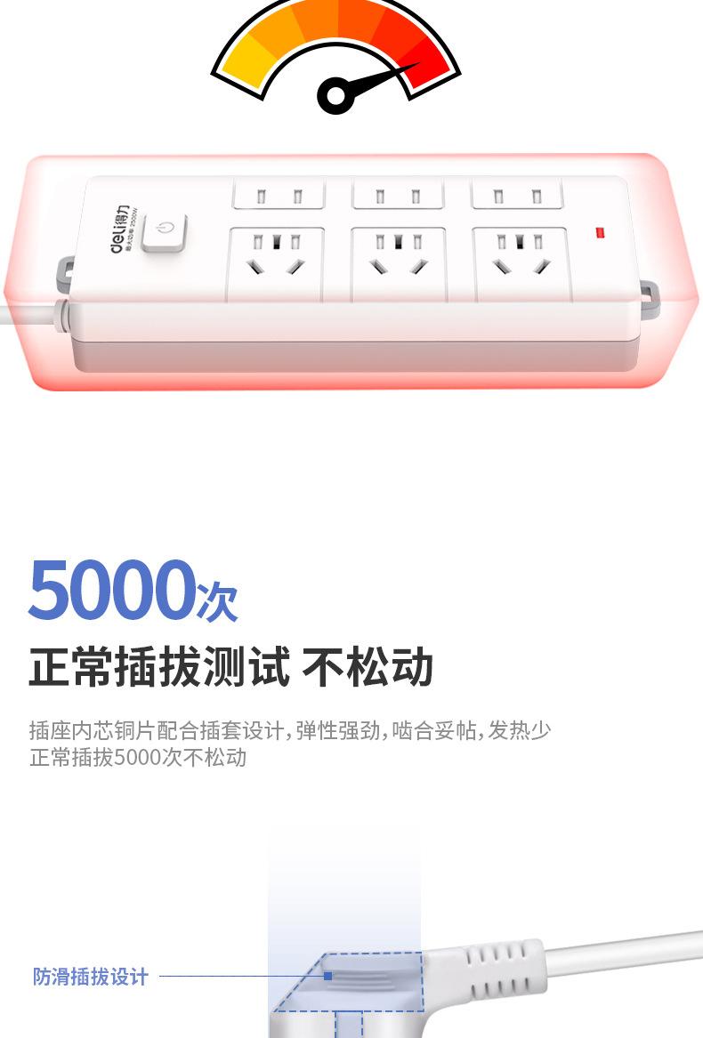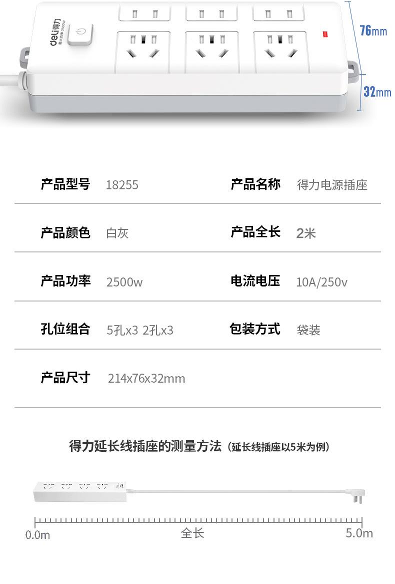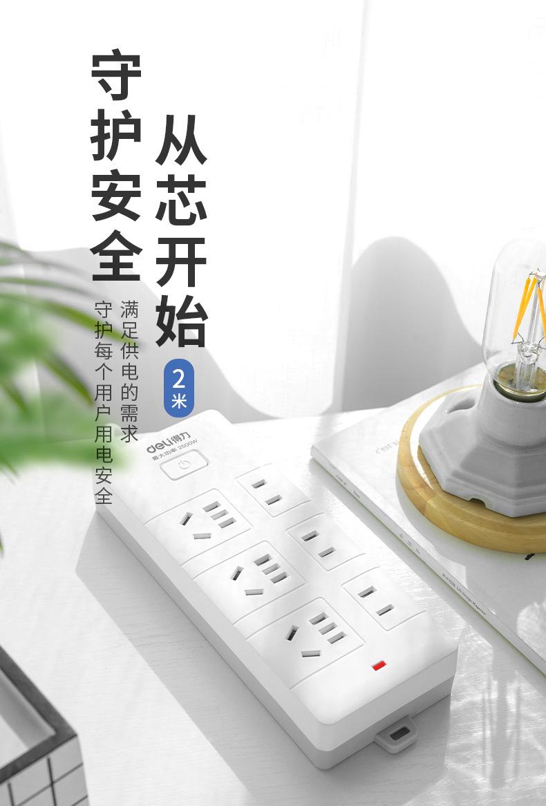 Toma de corriente Deli 18255 de 6 orificios y 2 metros con interruptor, cableado, enchufe de fila, cable de alimentación, venta al por mayor