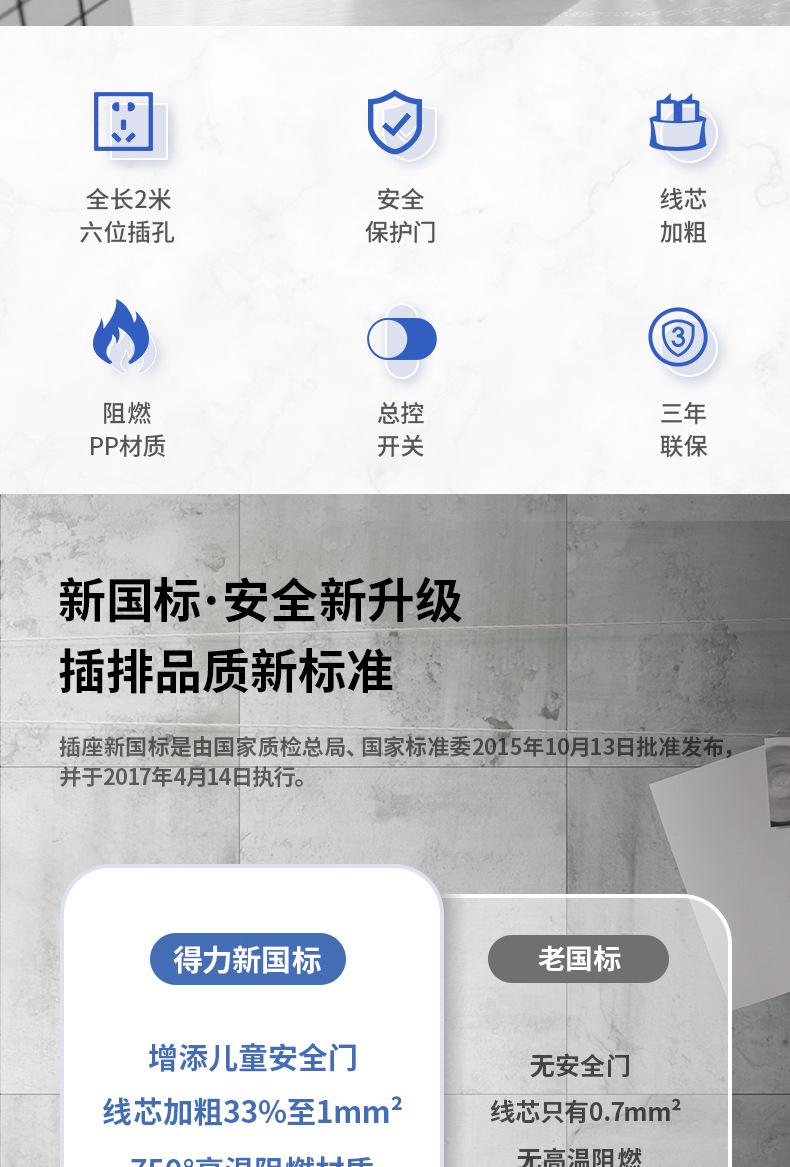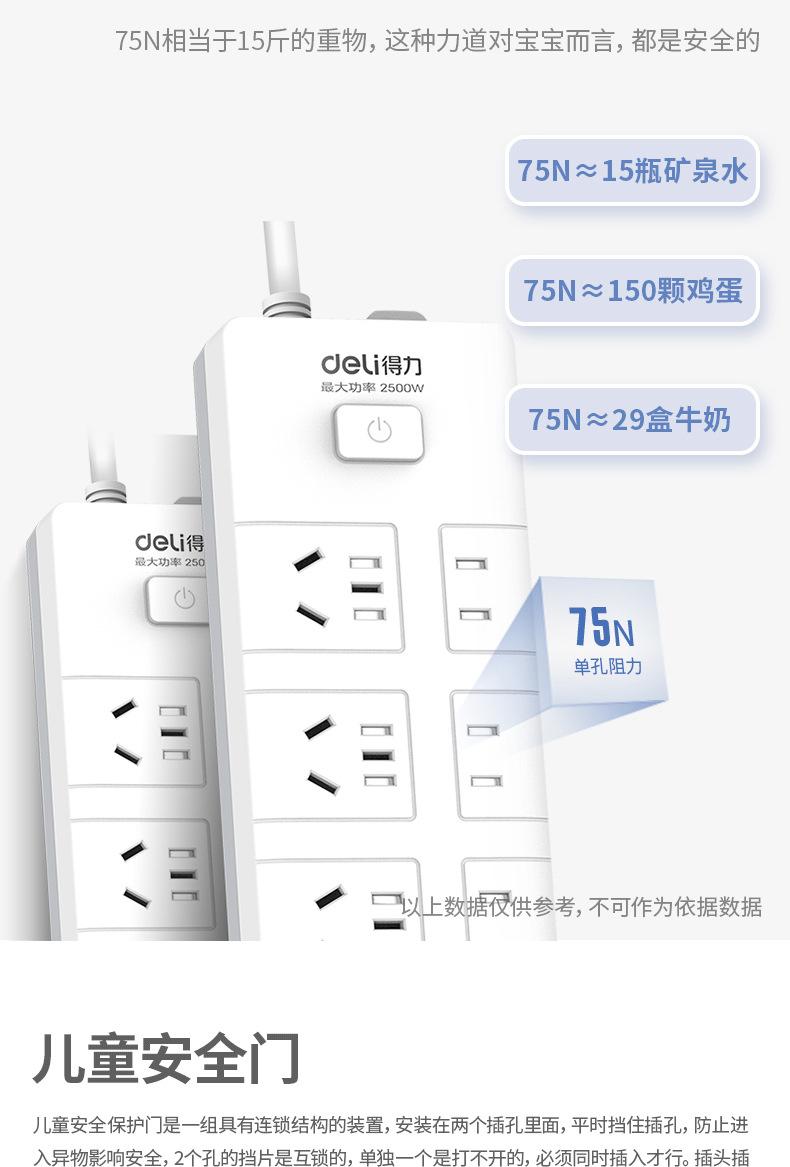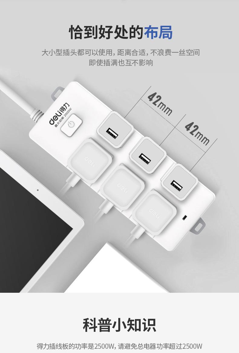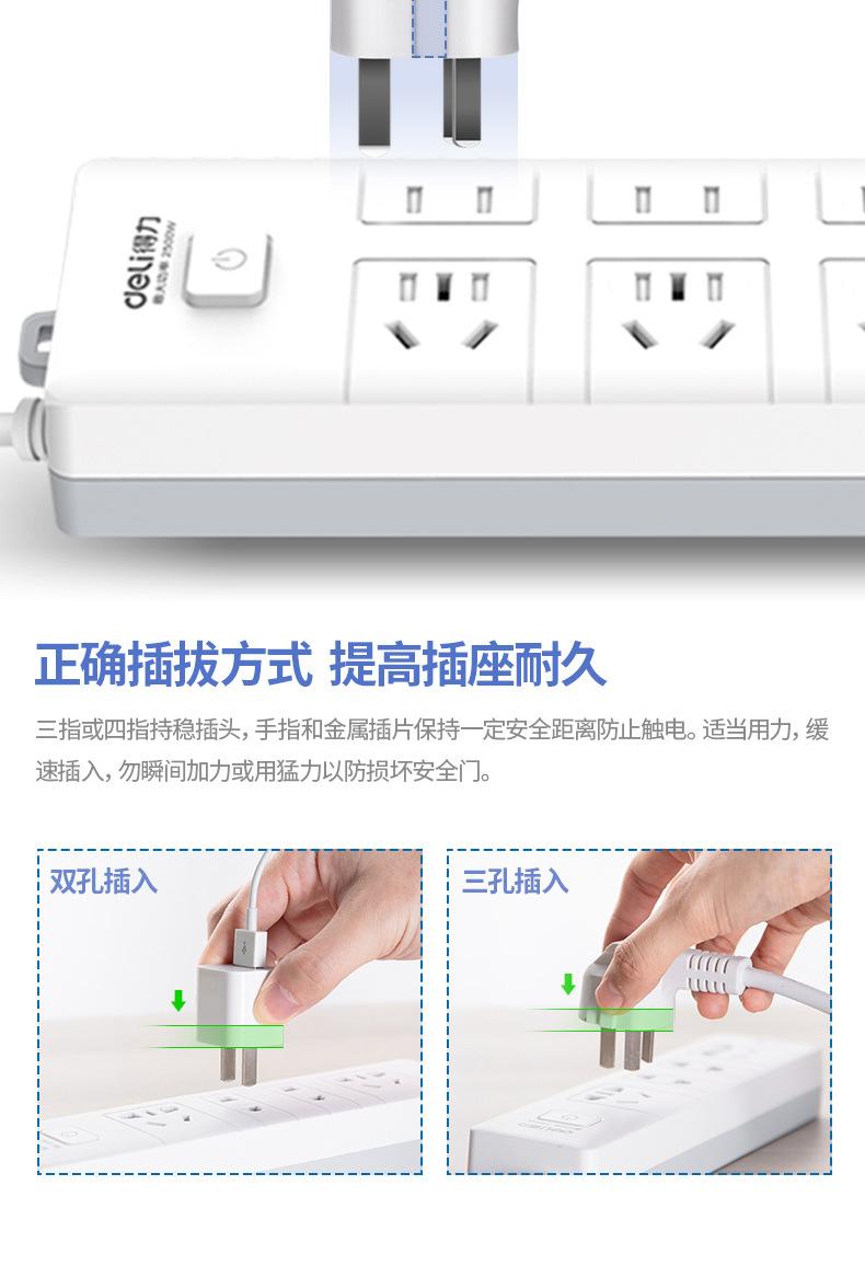 Toma de corriente Deli 18255 de 6 orificios y 2 metros con interruptor, cableado, enchufe de fila, cable de alimentación, venta al por mayor