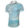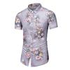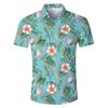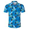 Exportación Transfronteriza Casual Solapa Estampado Digital Delgado Flor de Hoja Natural Manga Corta Camisa de Hombre