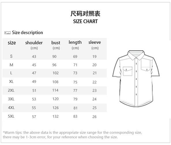 S, M, L, XL, 2XL, 3XL, 4XL, 5XL