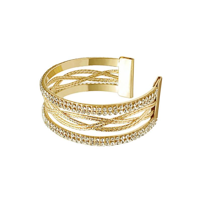 Ventas Directas de Fábrica Brazalete Abierto Europeo y Americano en Forma de C de Diamantes Completos Exagerado Versátil Metal Escarchado Línea Tejida Pulsera