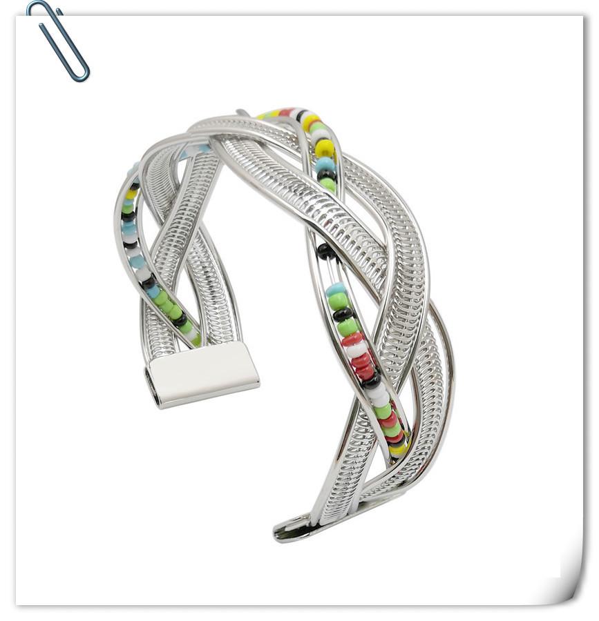 Pulsera Tejida de Moda Superventas de Amazon Europea y Americana Exagerada Tejida con Cuentas de Arroz Coloridas Brazalete Abierto Directo de Fábrica