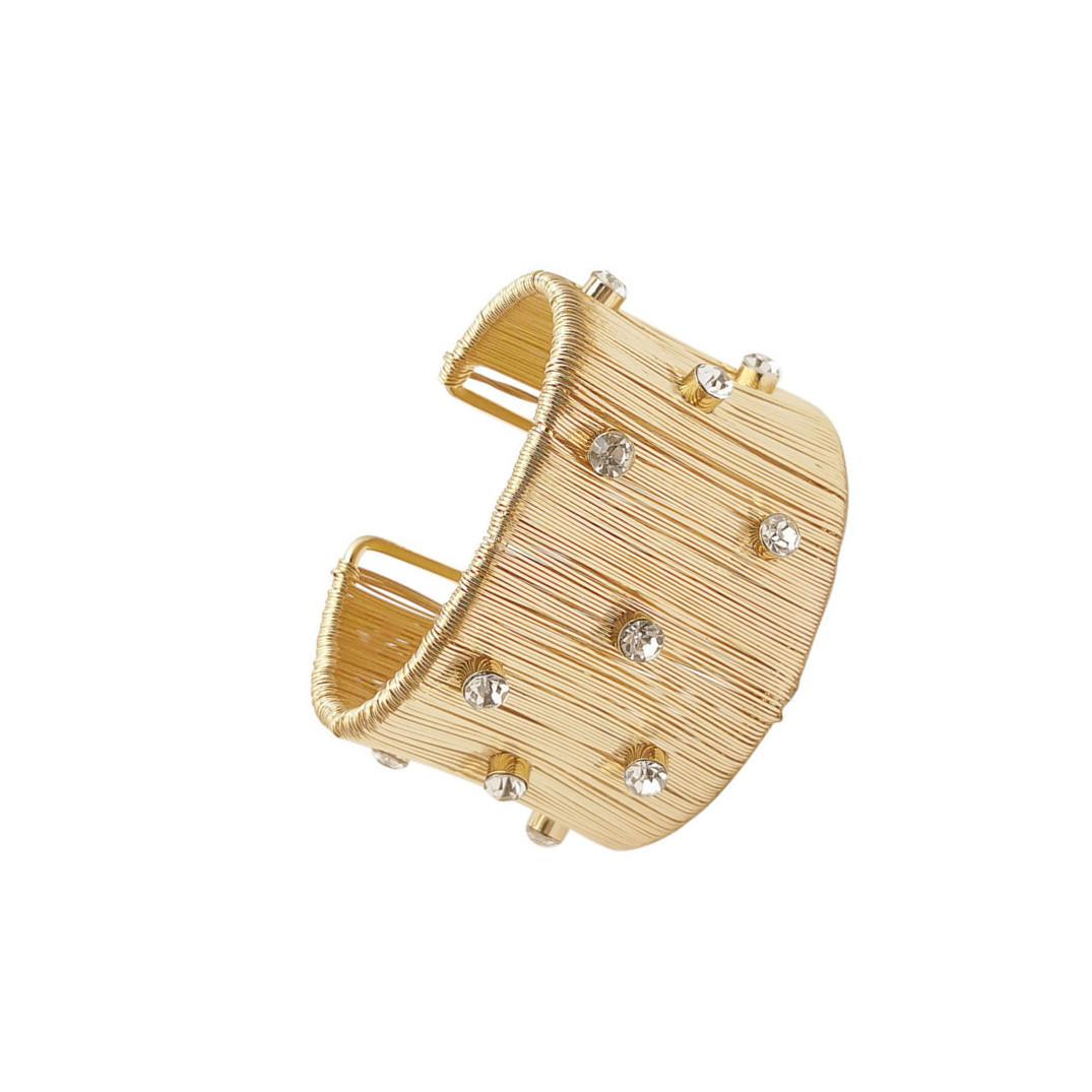 Pulsera de alambre de hierro más vendida de Amazon, pulsera abierta europea y americana exagerada incrustada con pedrería, pulsera ancha de alambre de hierro envuelto
