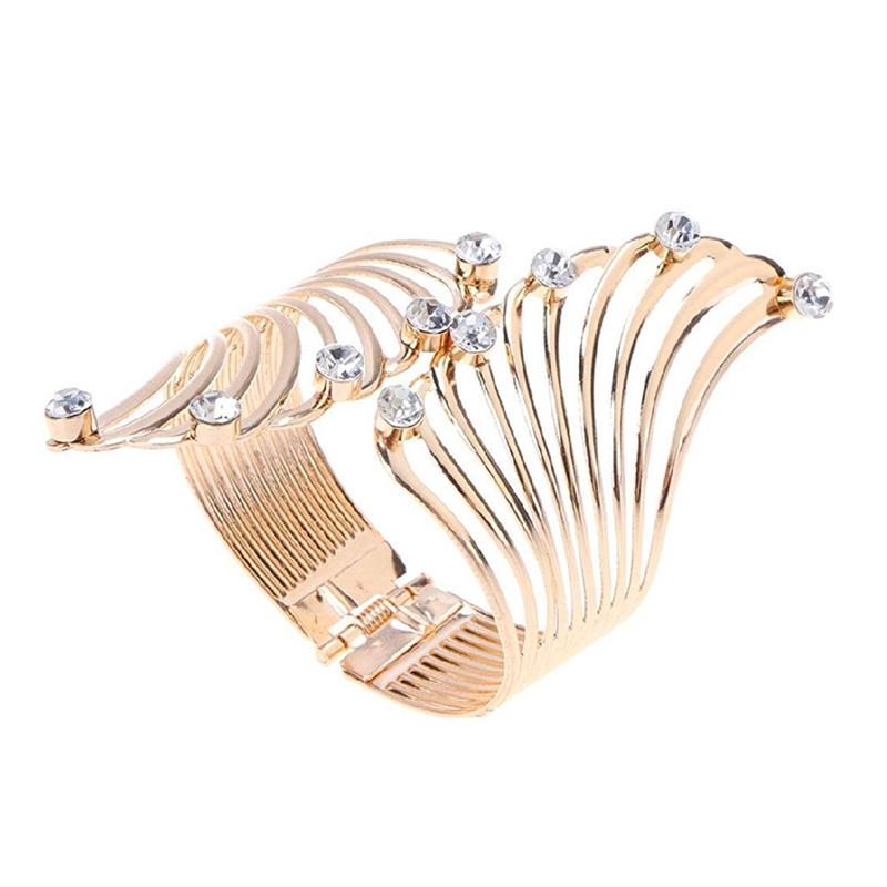 deseo más vendido Amazon más vendido pulsera de metal creativa de moda con forma de pluma incrustada con pedrería personalidad brazalete con forma de ala
